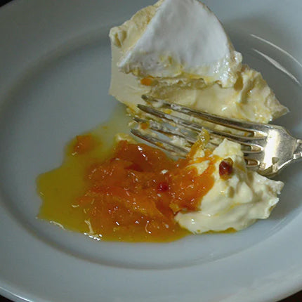 濃厚な蜜柑の甘みがぎゅっと詰まった「月読み蜜柑+ピンクペッパー」をリッチでまろやかなと爽やかな酸味のチーズ、ブリア・サヴァランに添えて。