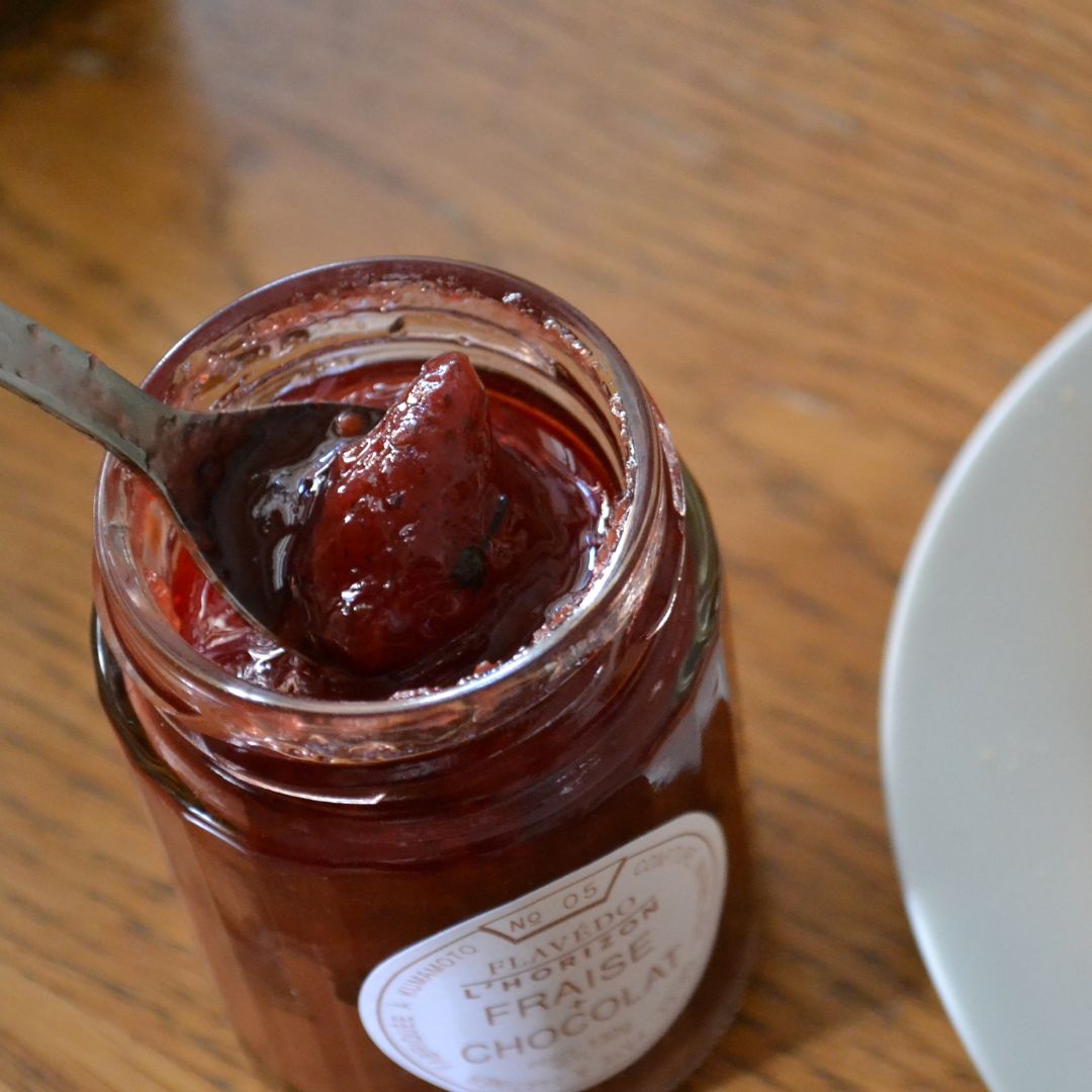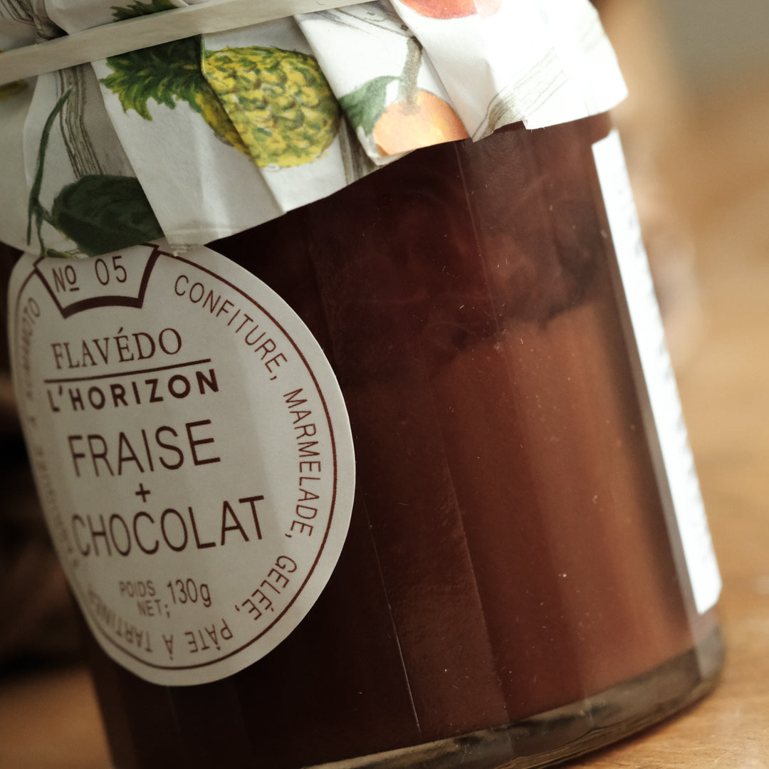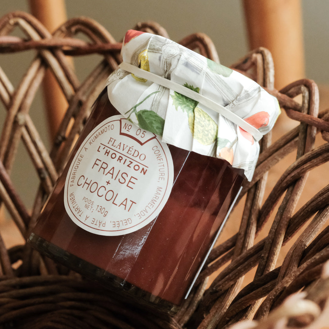 こちらは2層が美しいコンフィチュールシリーズ「ロリゾン」。ロリゾンとは、“地平線、水平線”のこと。コンフィチュールが二層に分かれる境目を、地平線とみたてて名づけられました。ぐっとスプーンを差し込んで、2つの味の融合を楽しんでくださいね。