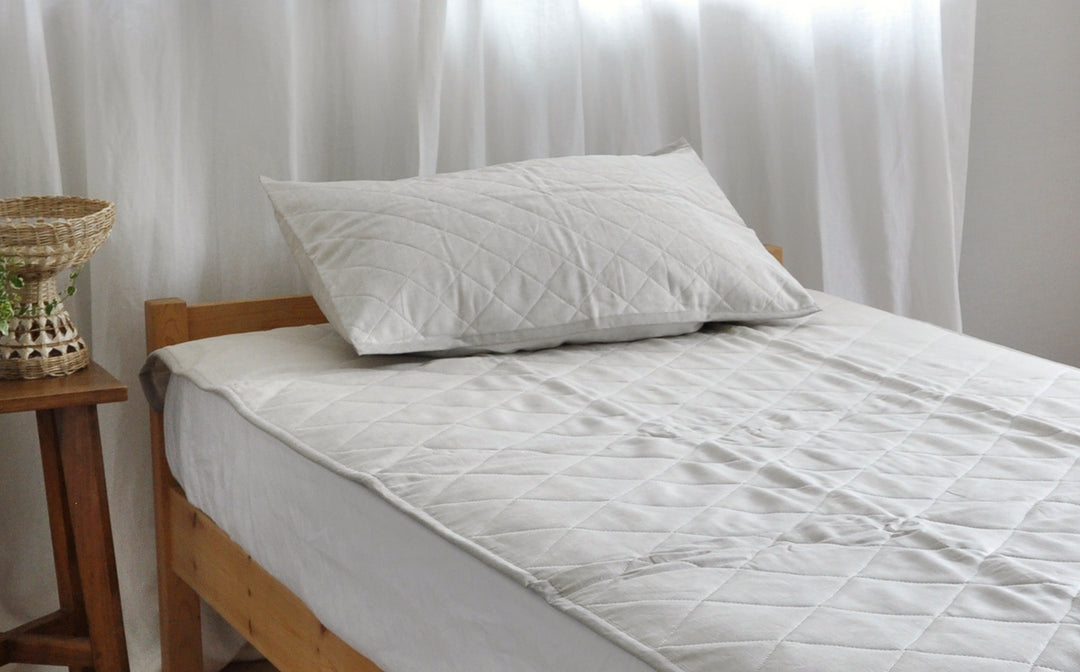 ウールのベッドパッドや馬毛のベッドパッドと組み合わせて、重ね方・順番を変えることで通年お使いいただけます。