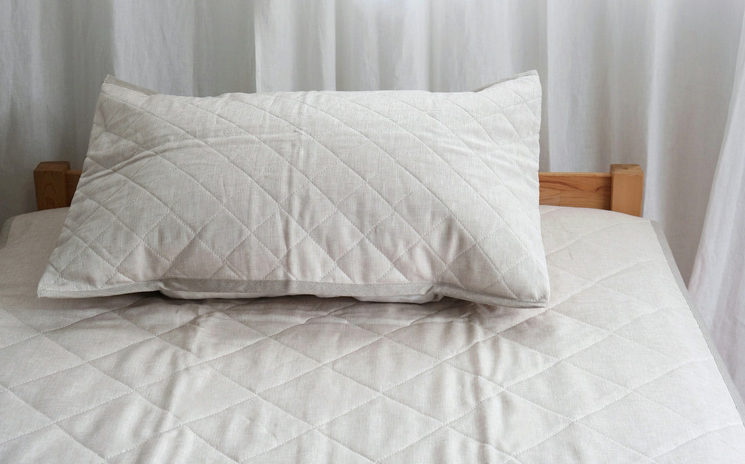 フレンチリネンの生地と麻わたを組み合わせた、ISHITAYAオリジナルのキルティングピローパッド。今お使いの枕にさっと重ねるだけで、涼やかに眠ることができます。