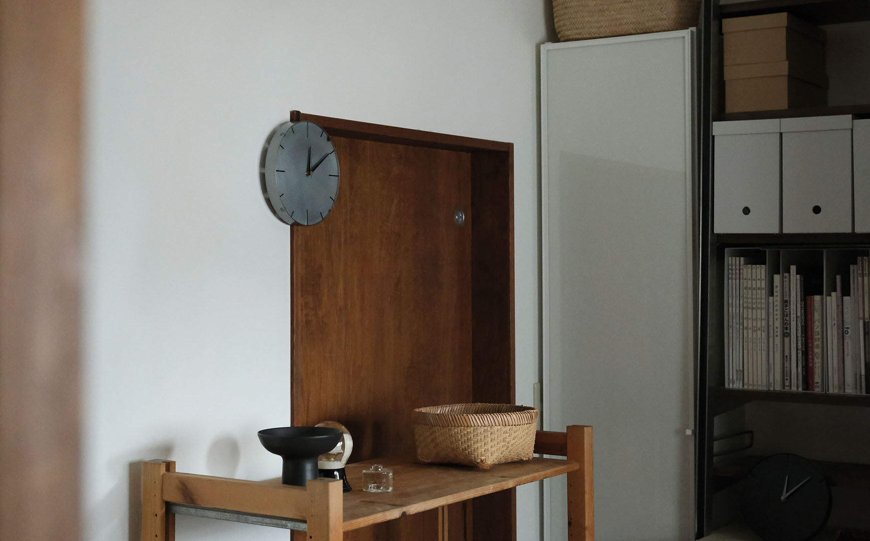 壁面の色、配置の仕方や光の具合によって印象が変化し、陶器や木など様々な素材の個性とともに独自の部屋をつくってくれます。