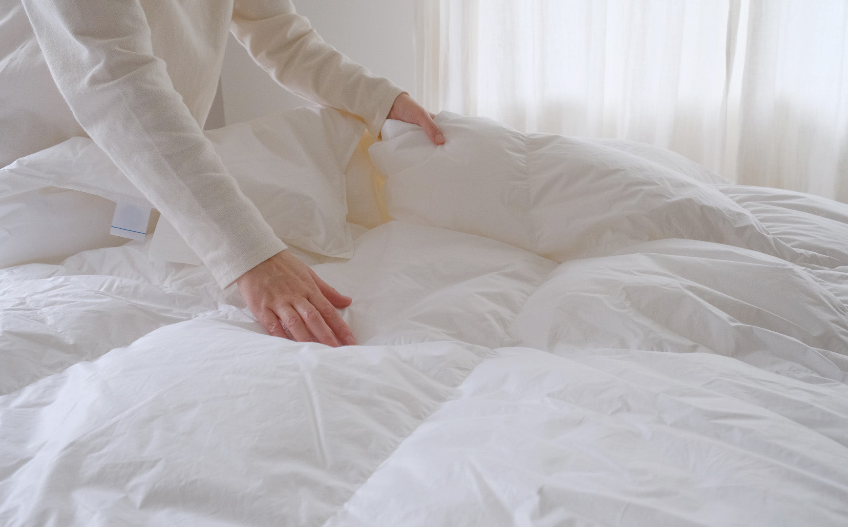 ・お布団の上にのったり、羽毛をおさえつけないまた習慣としておすすめしたいのが、毎朝のベッドメイキング。