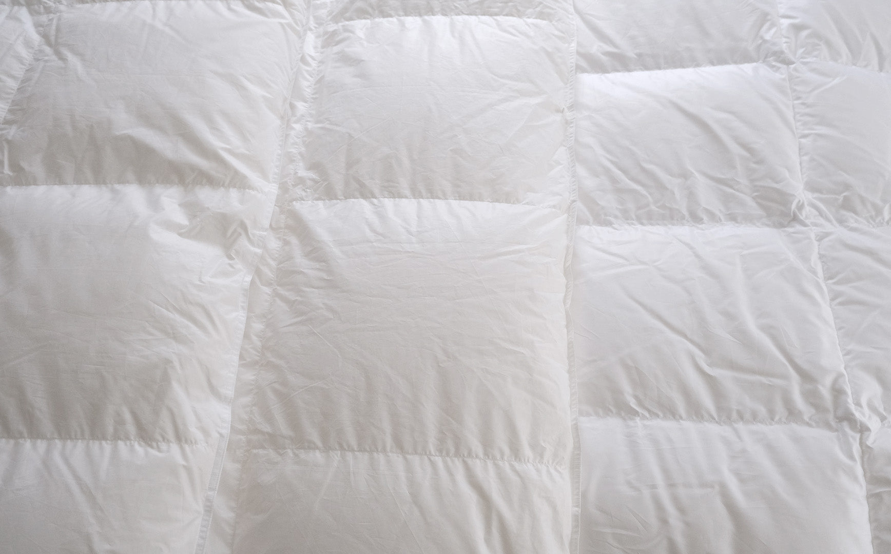 ダウンパワーの高さから他に売られている羽毛布団に比べて軽く、スマート。粒が大きくてよく膨らむ良質な羽毛だから、沢山詰めなくても保温性があります。またマス目が細かいことでフィット性も高まり、肩口から冷気が入り込むことを防ぎます。
