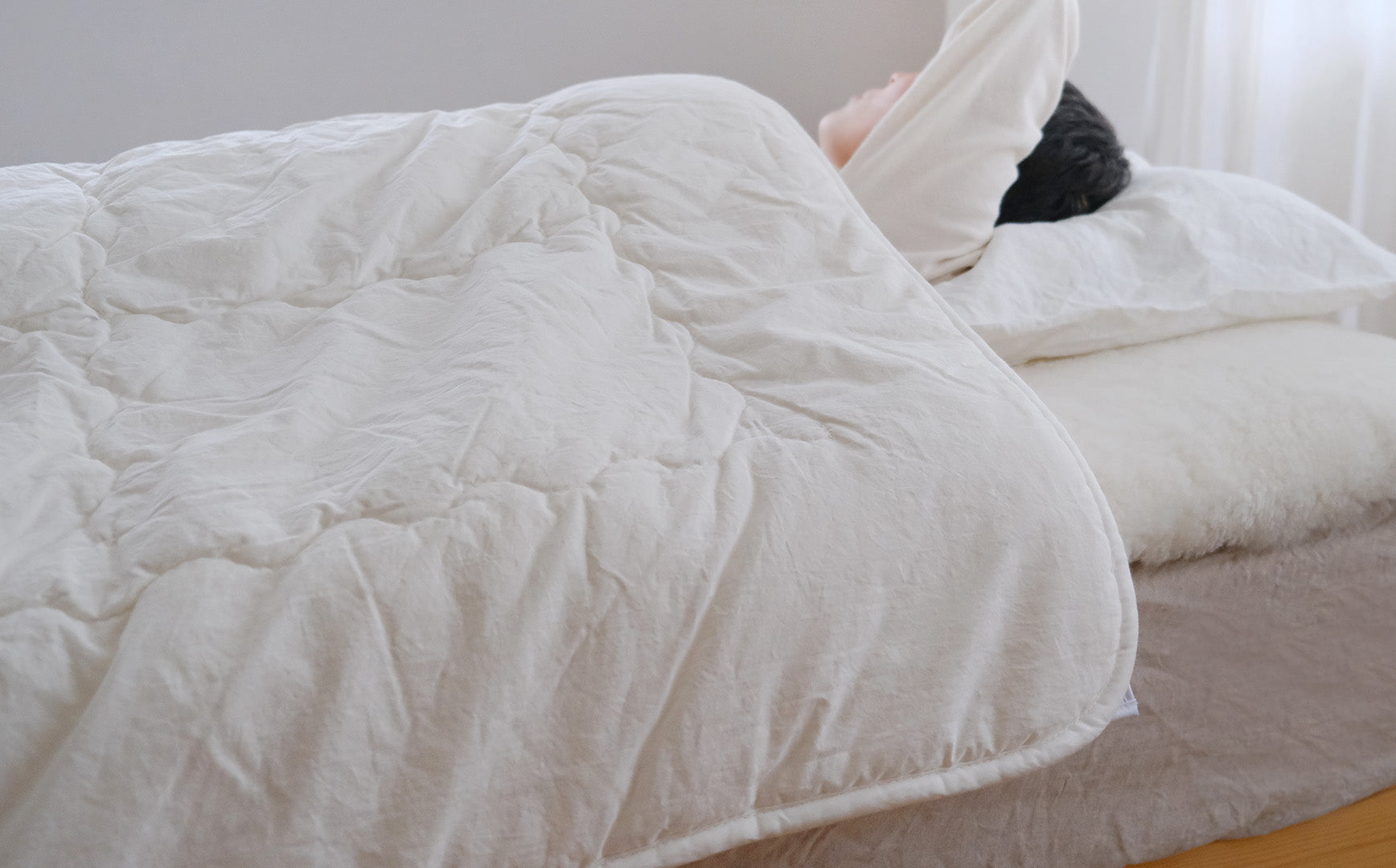 ISHITAYAの羊毛合い掛け布団は、私たちスタッフみんなが虜になる肌触りと掛け心地。