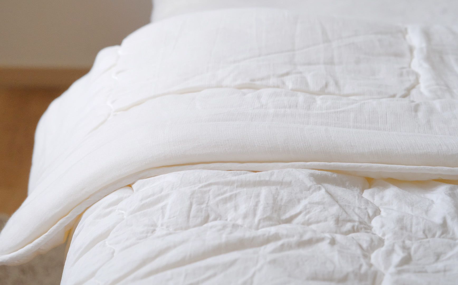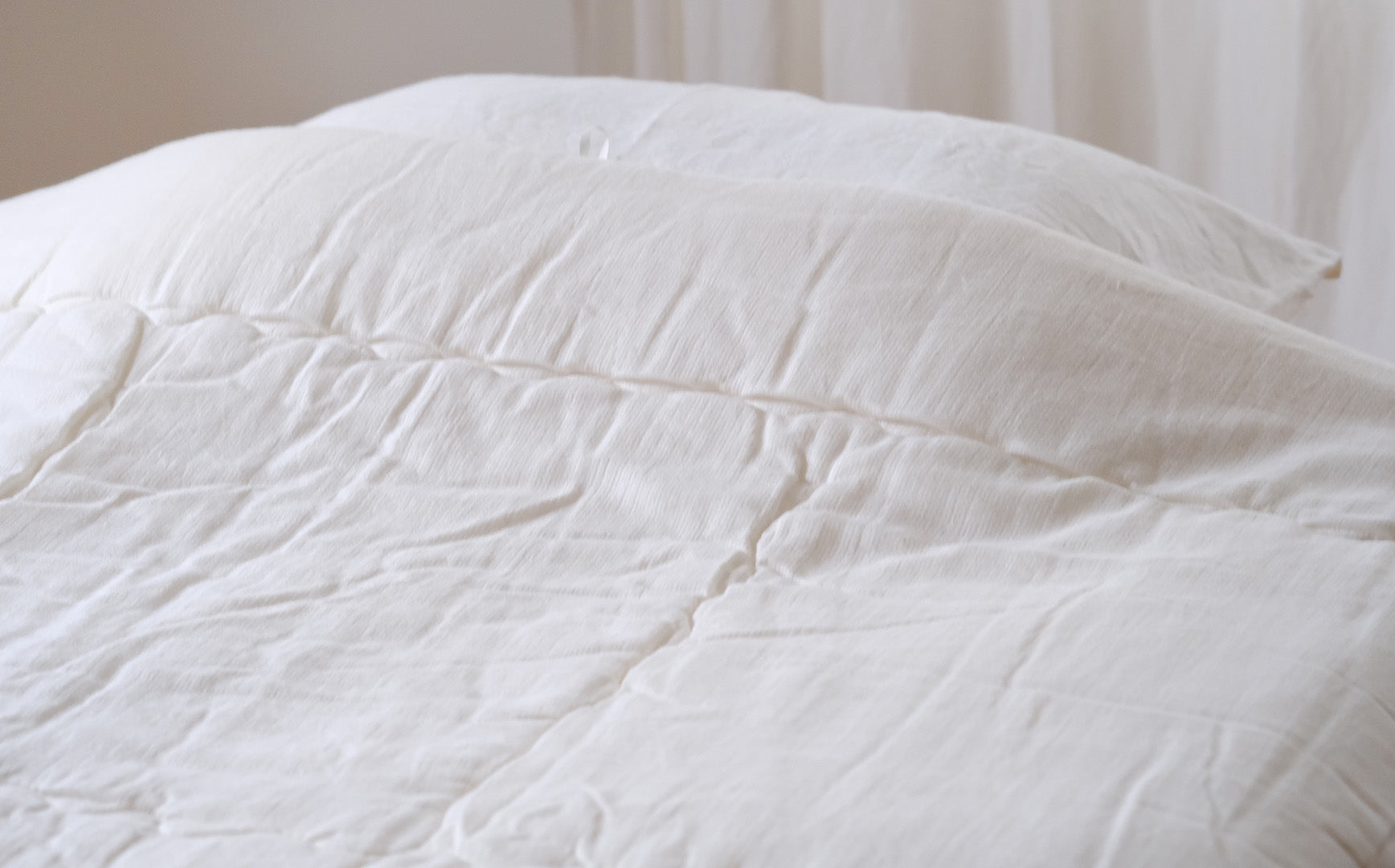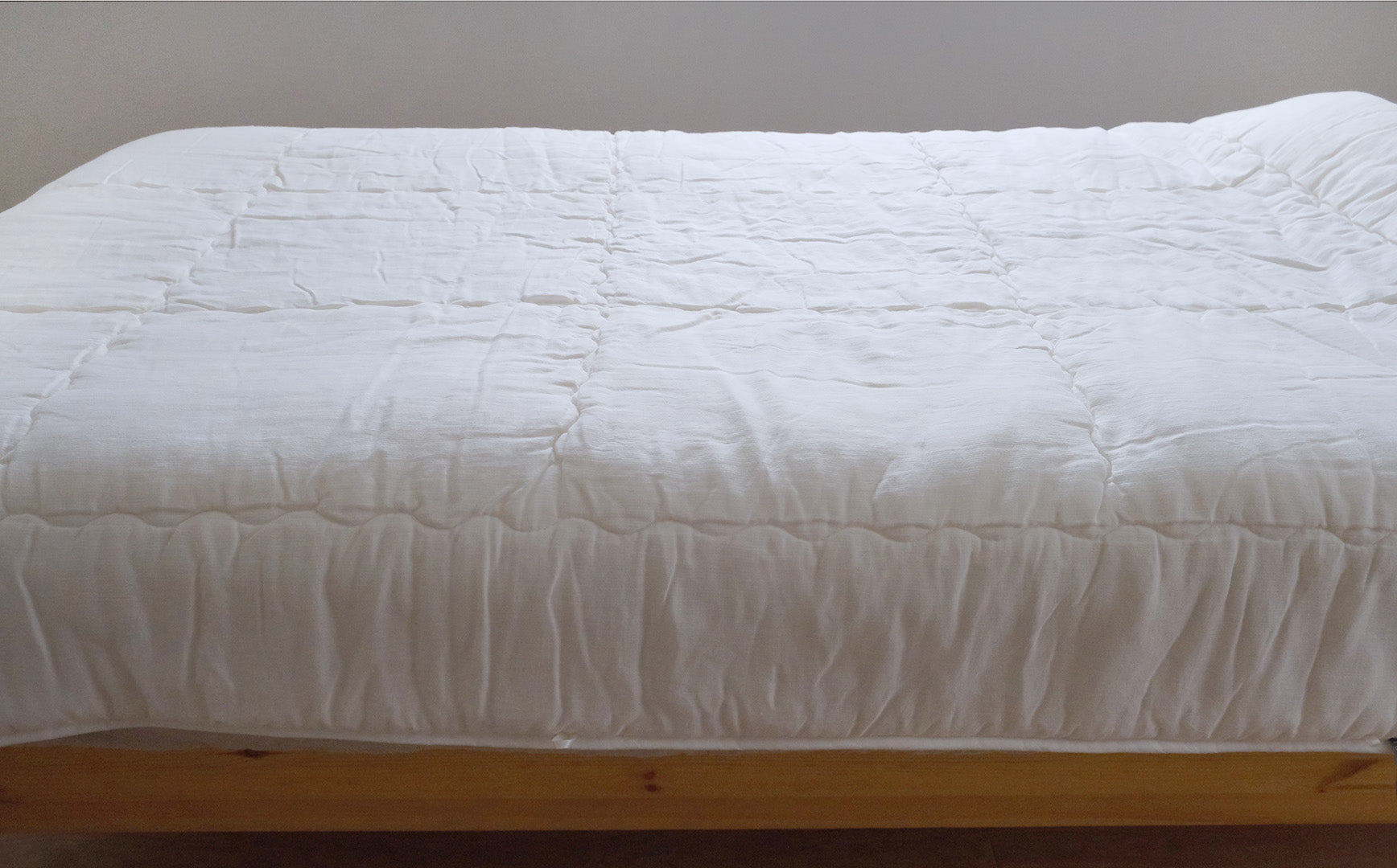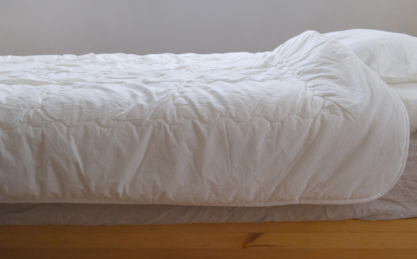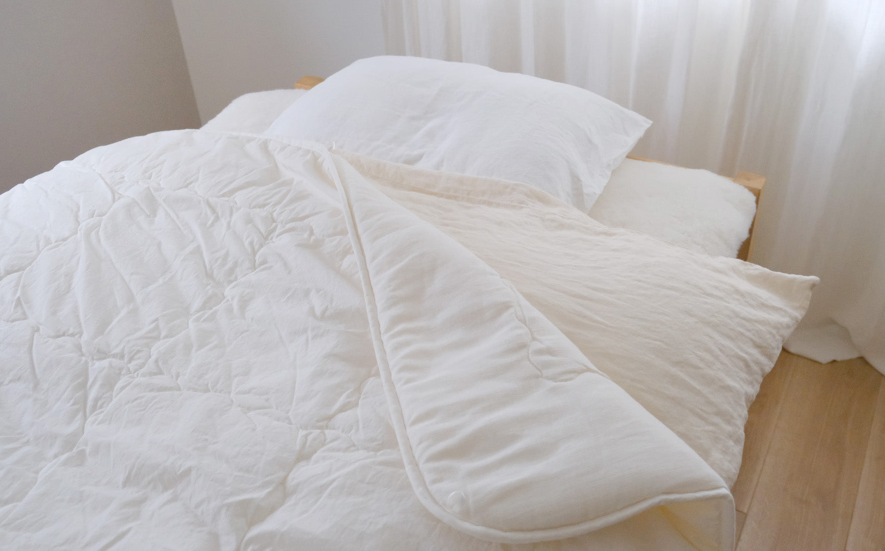一枚で使うなら、春から梅雨(3~7月)秋(9~10月)など季節の狭間。冬場は羽毛布団の下や上にプラスすることで、空気の層が生まれて保温力がアップ。包まれるような肌あたりで布団から抜け出せなくなります。