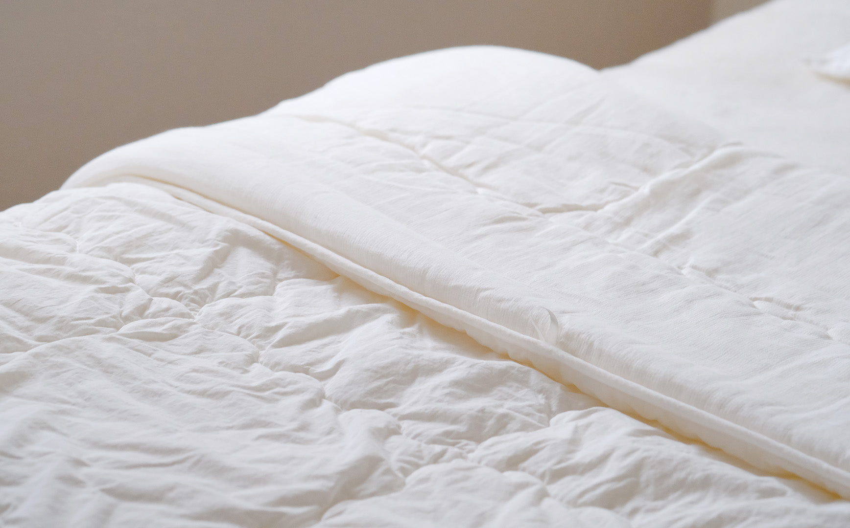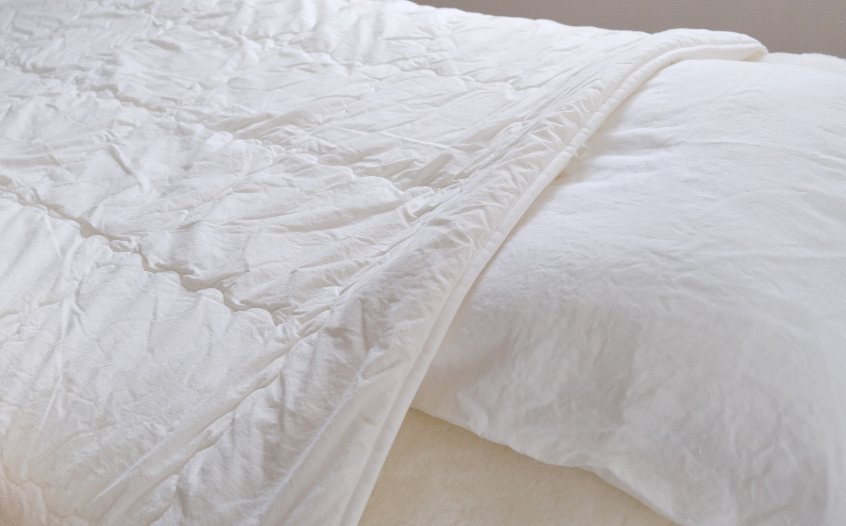 羽毛布団はあるけれど、もう少し保温性を高めたかったり、季節の狭間にちょうどいい寝具をお持ちでない方は羊毛合い掛け布団が活躍します。