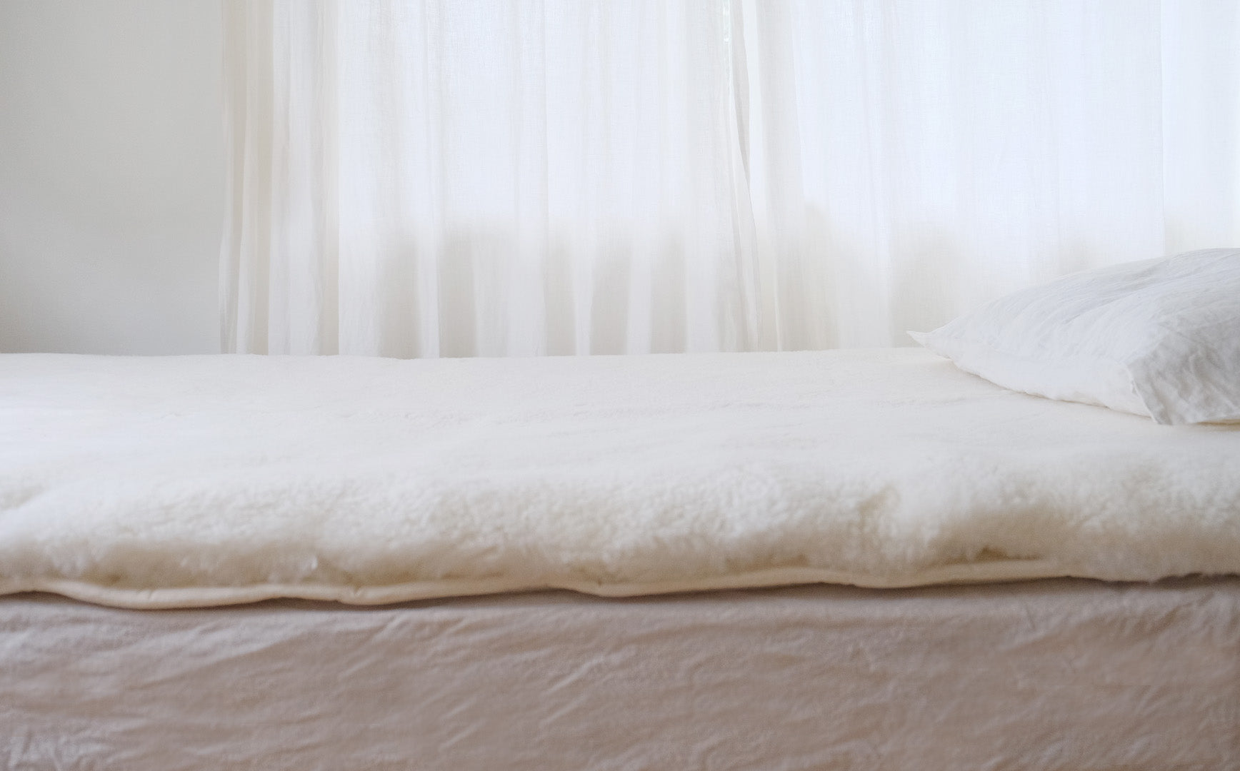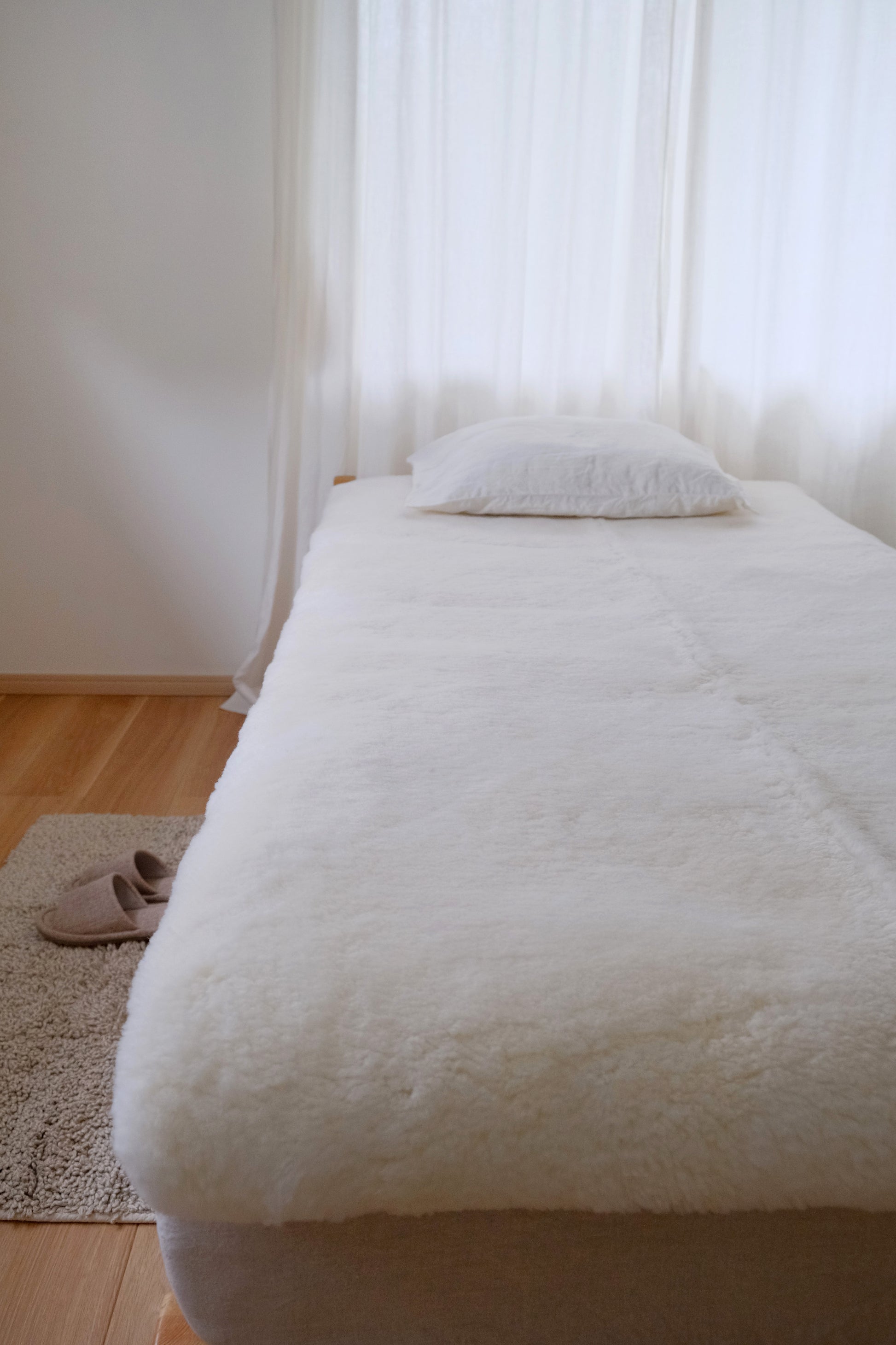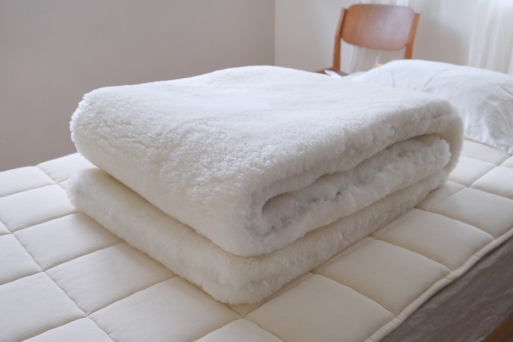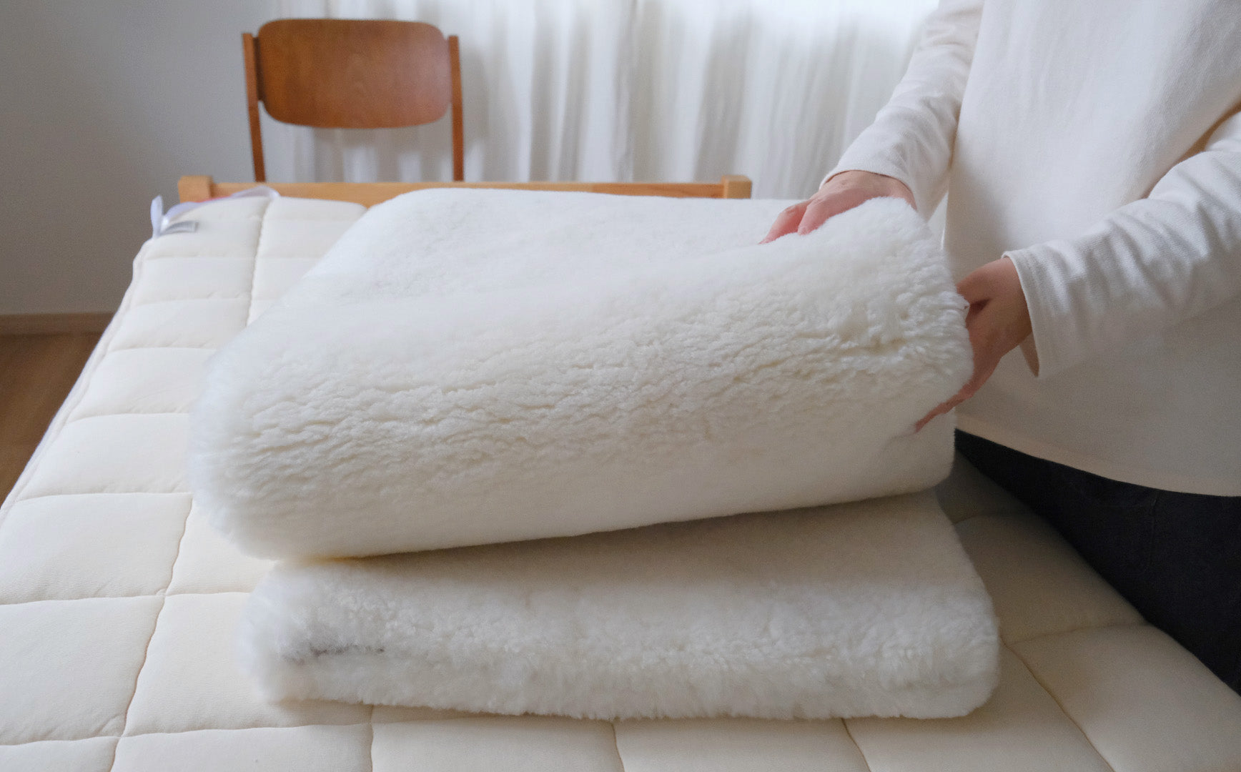 羊の毛が密集したムートンは熱伝導率がとても低く、冬にあたたかく、夏に涼しいを叶えてくれる天然繊維です。高密度な羊の毛が天然のスプリングのように身体を支えるベッドパッドは、冷えでお悩みの方やベッドで長時間過ごされる方におすすめしたいアイテムです。