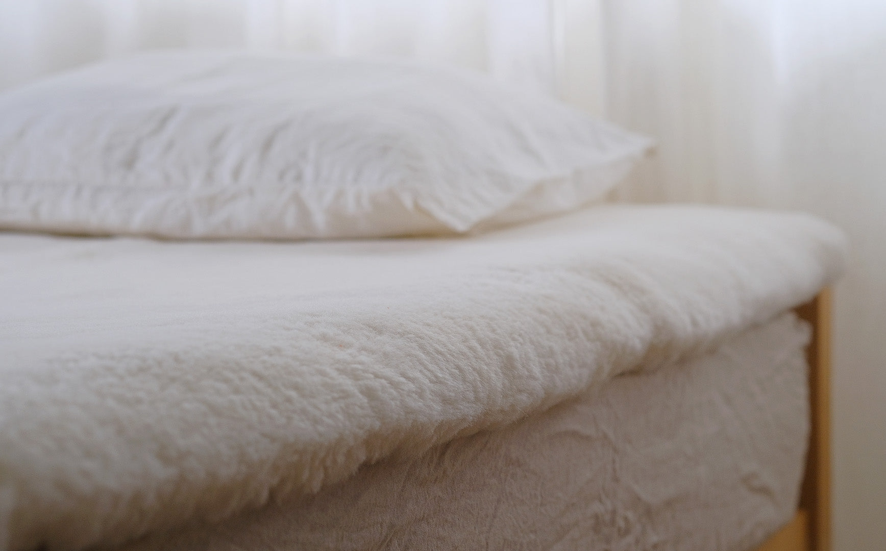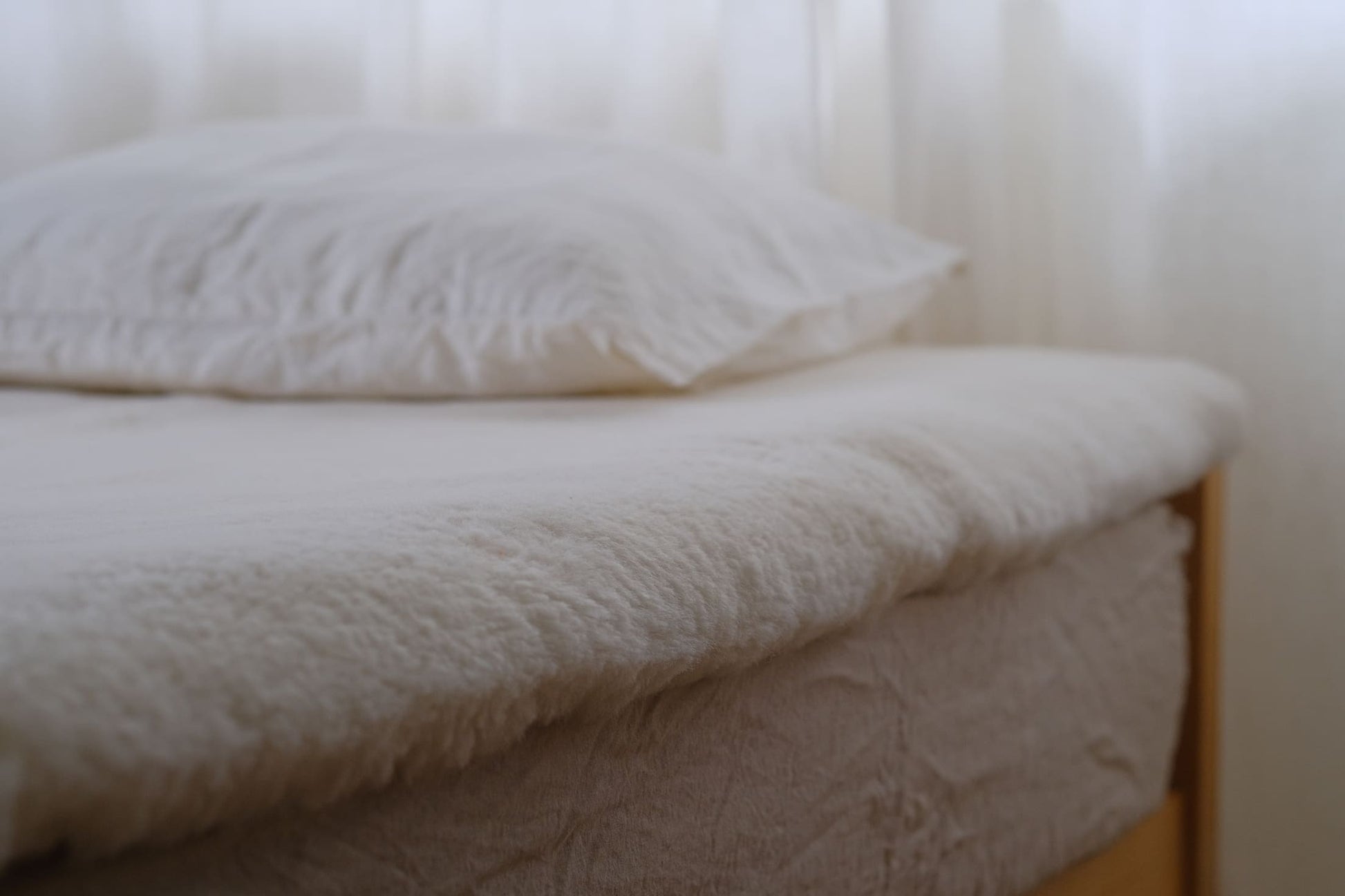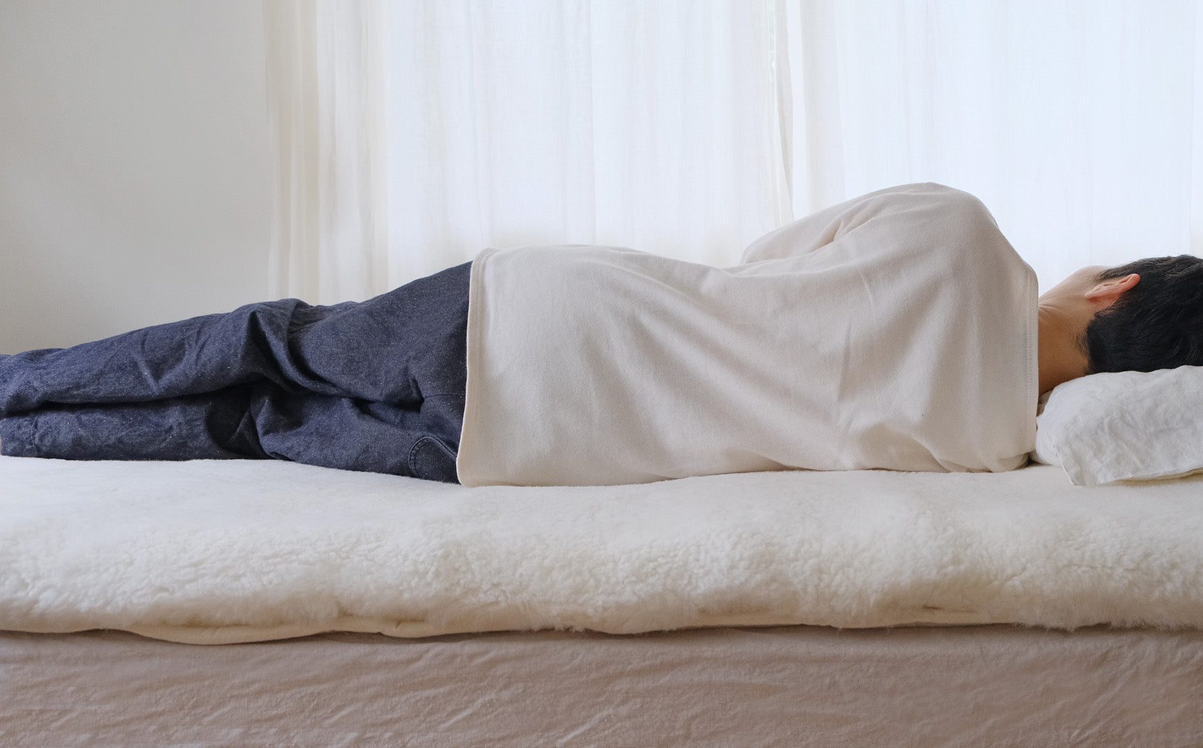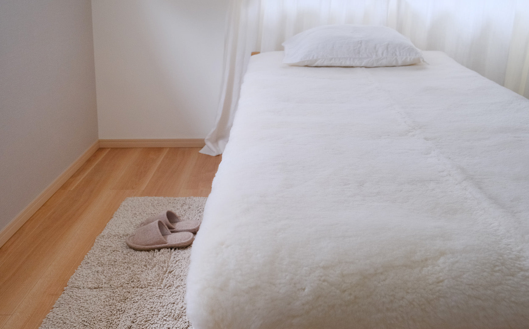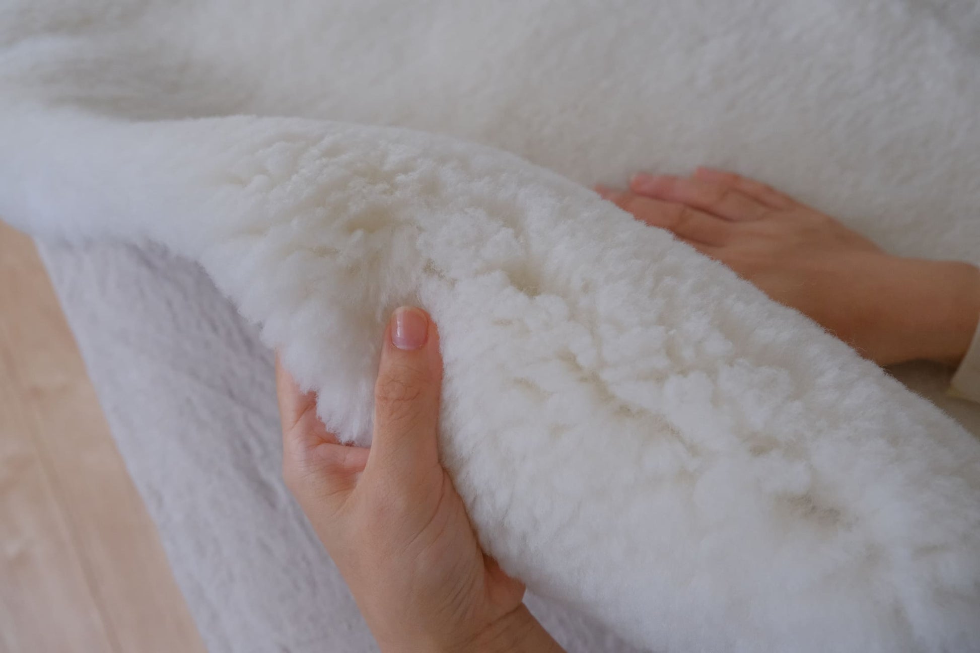 あたたかな見た目が印象的なムートン。その機能は、体圧分散、保温、湿度コントロール、断熱(冬の外からの寒気を断つ)と、質のよい眠りに必要なポイントを抑えた優れた天然素材です。