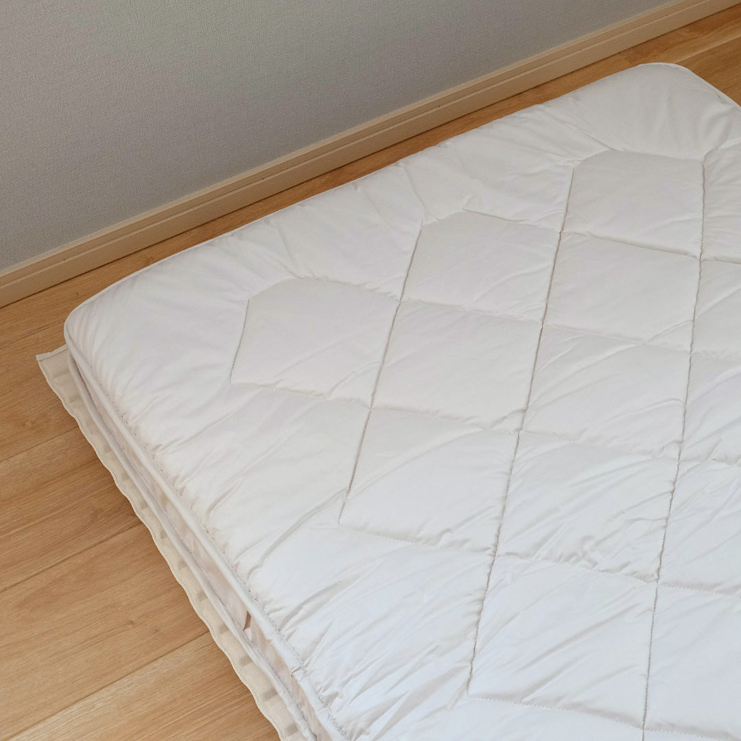 ※わたやウレタンを固定している、キルティングの軽微な目飛びや製造途中の色の付着につきましては、ご使用に支障がないと判断したものは品質の許容範囲内とさせていただいています。寝心地に影響ございませんので、安心してお使いください。これらを理由としての返品・交換はお受けいたしかねますので、あらかじめご了承ください。