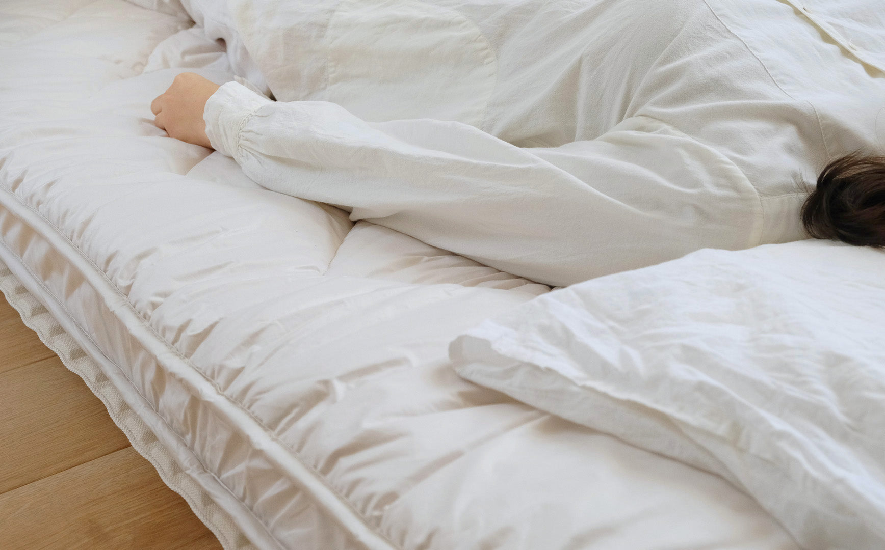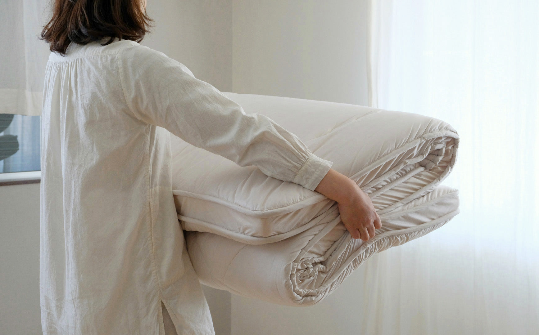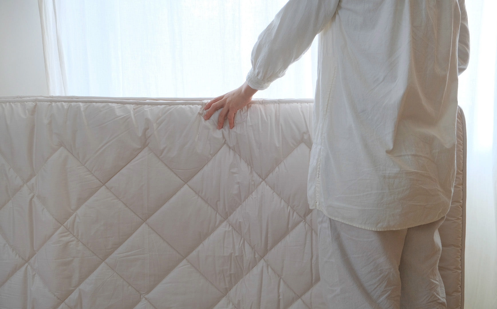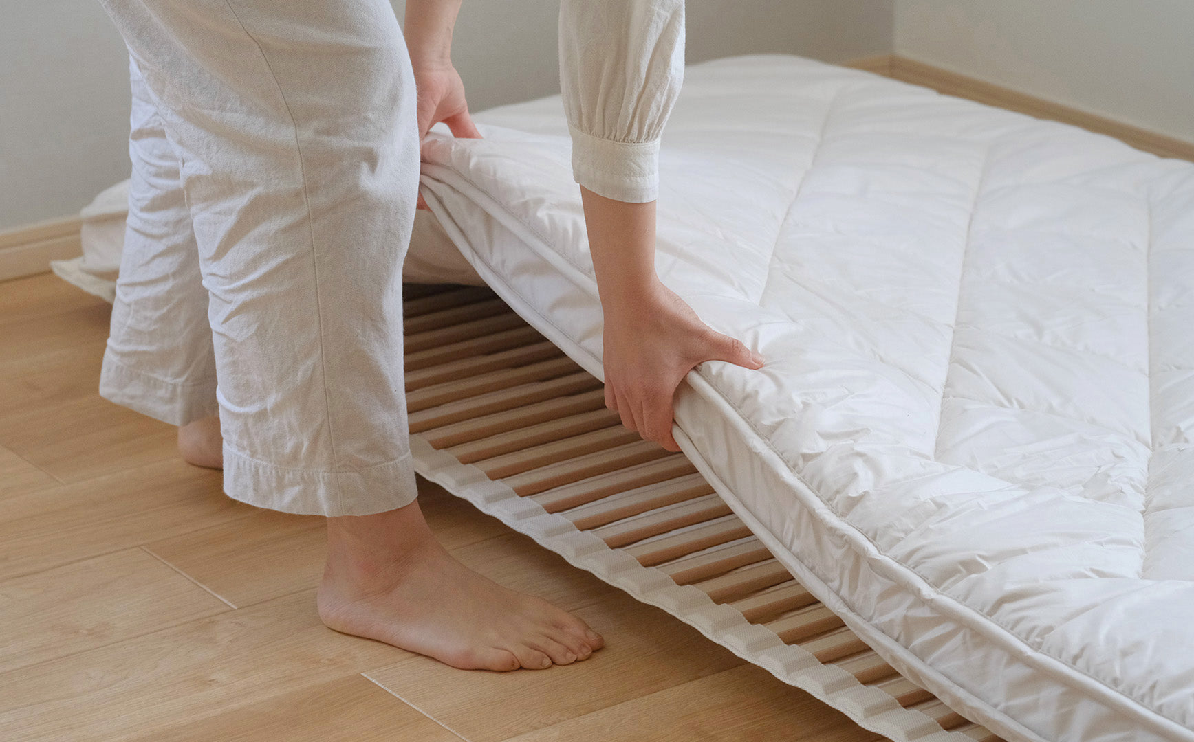 敷き布団を選ぶ時に、求めることは何かと考えて最初に頭に浮かんだこと。それは誰でもひとりで上げ下ろしができて、お手入れにもストレスがないことでした。毎日のことですから、負担なくできることって大切です。