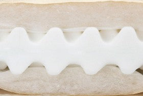 ウレタンは腰にあたる部分は硬め(200ニュートン)、頭と足の部分はやや硬め(140ニュートン)と、体重のかかる大きさに合わせて異なる硬さ。プロファイル加工(波形)で仕上げることで、面ではなく細かな点で身体を心地よく支える設計です。