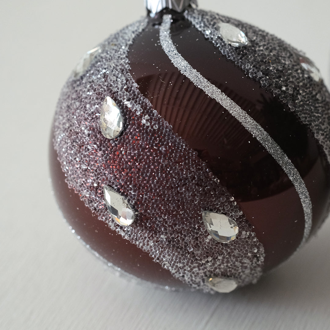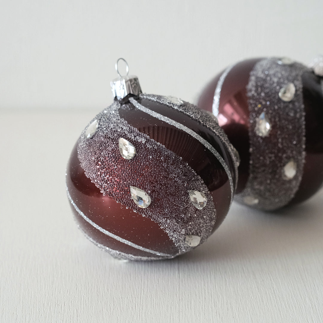 ポーランドのブランドVITBISのガラスオーナメントです。シックなバーガンディのボールオーナメントは、ガラス吹き、型取り、色塗り、絵付けと、ひとつひとつ丁寧な工程でつくられています。ハンドメイドの逸品オーナメントをぜひお楽しみください。
