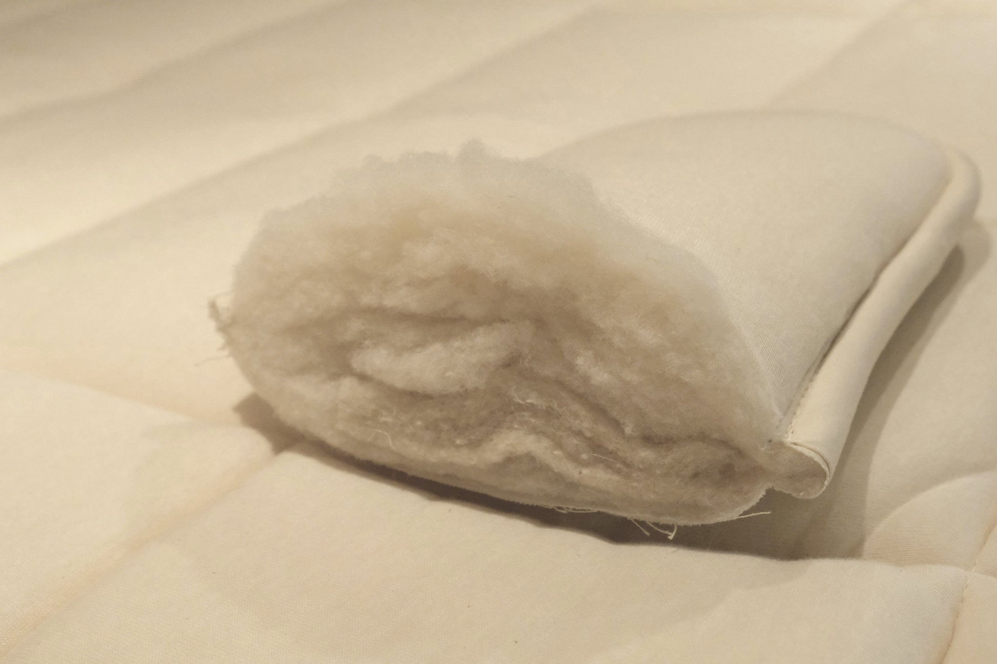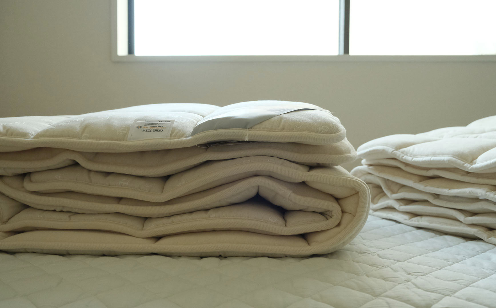 私たちがいくつかウールのパッド(敷き寝具に重ねるもの)を紹介するなかで、それらのもととなったこのウールの敷き布団の存在を知りました。