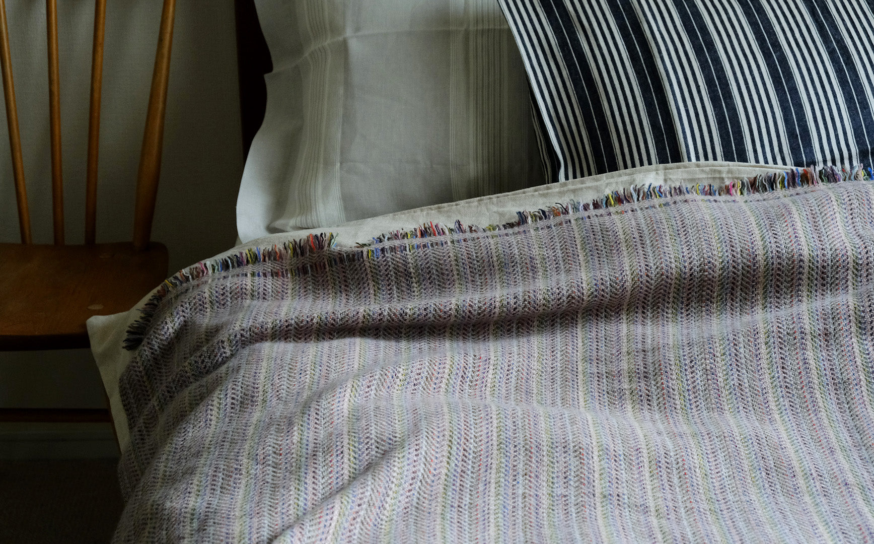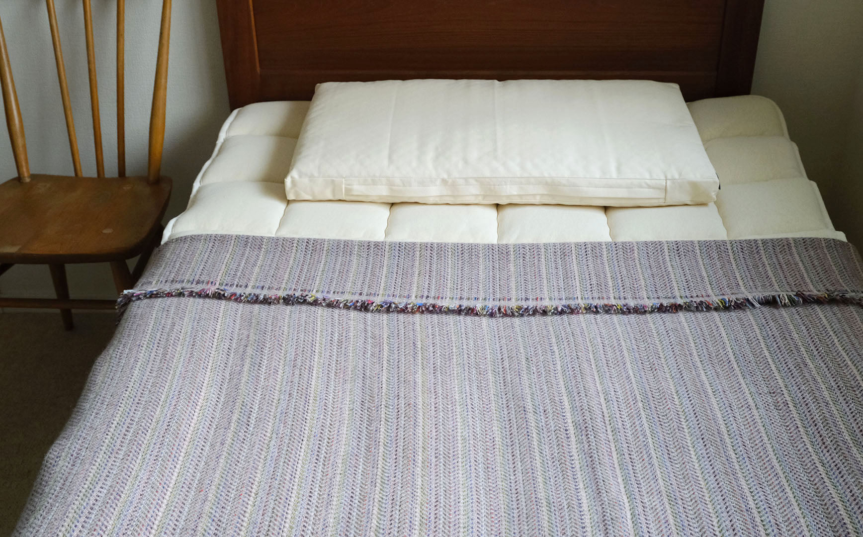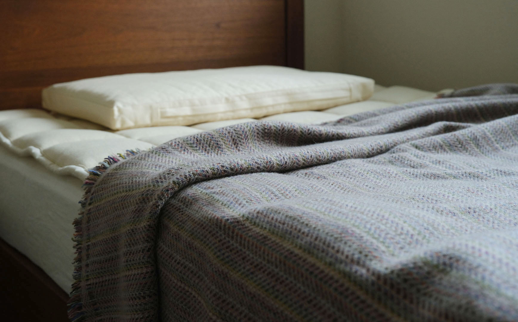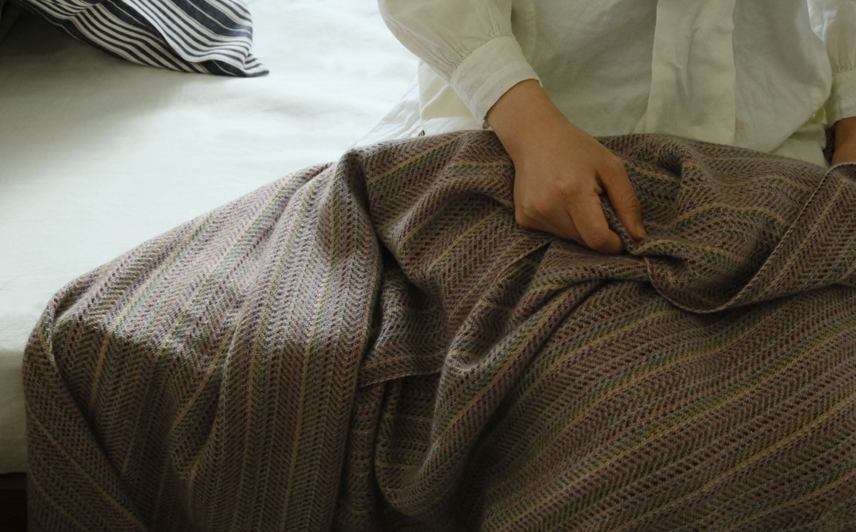 細すぎない糸で絶妙な加減でつくられたブランケットは、通年私たちの眠りを支えてくれます。