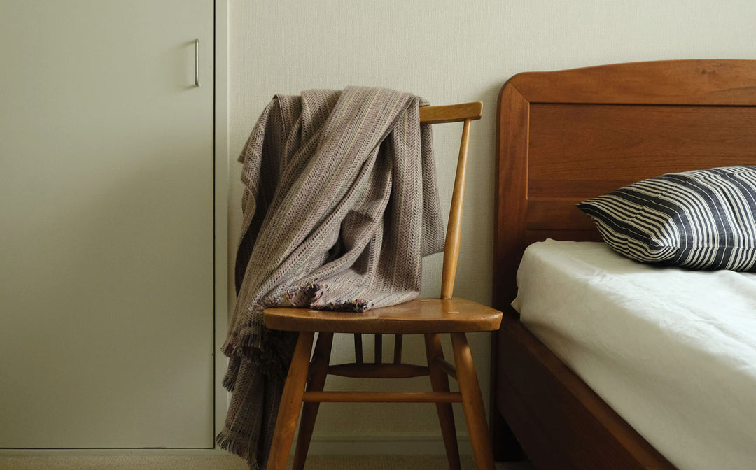 ISHITAYA代表の田中さんが「これを持っていると眠りのクオリティが上がります。冬はどこにいても手放せない……」と話す、カシミヤ100%のブランケット。冬時期もよし、春もよし、冷房下の夏にかけても違和感のないあらゆる点において優れた一枚です。身体にかけると存在を消すような軽さで、ふわっとあたたかさを感じます。