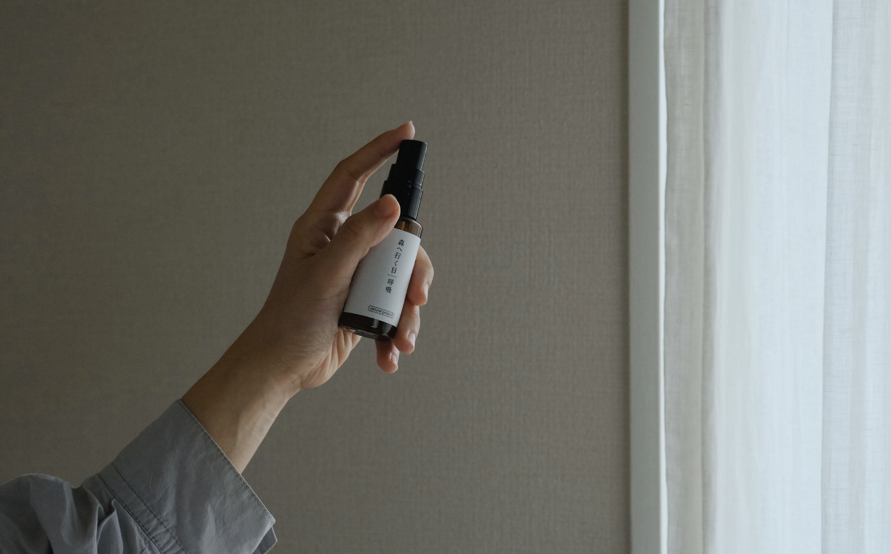夜の静謐な時間、ちょっとした書き物をしたいとき、動き出す前の朝、気分を変えたい夕方……シュっとひと吹きで空間や心をリセットできます。
