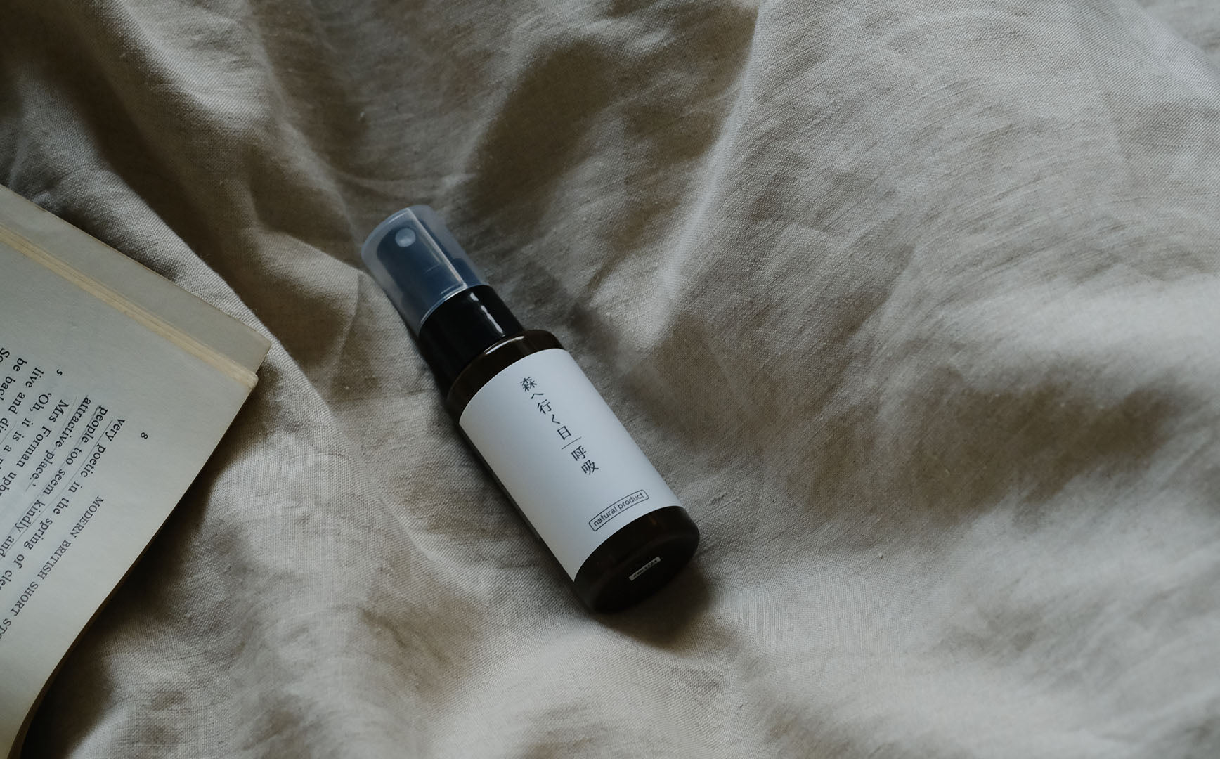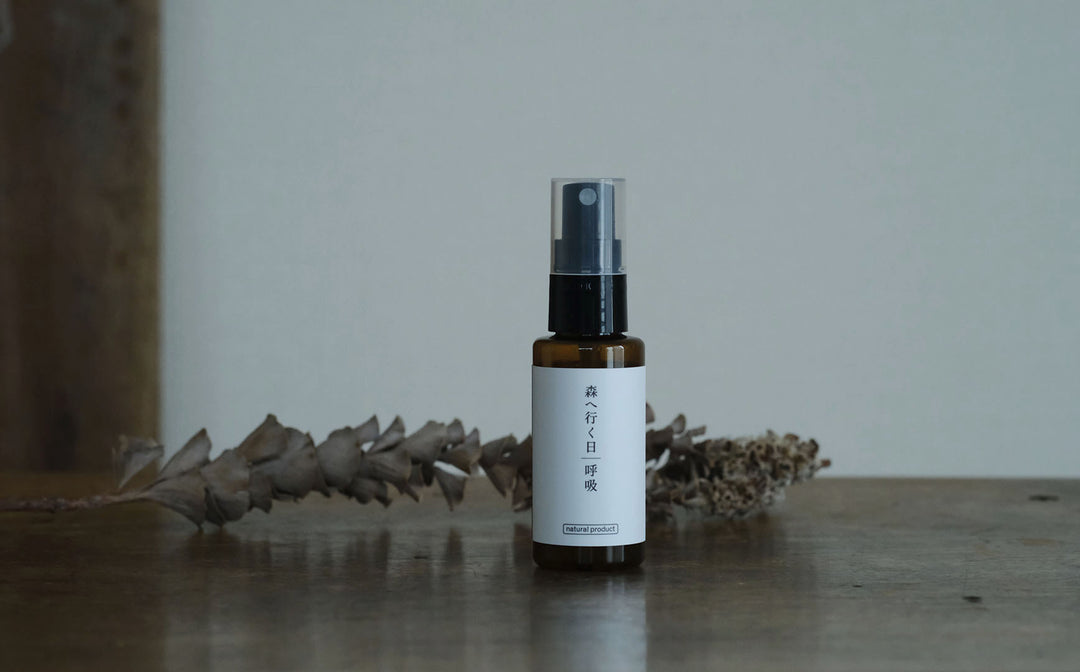 yes のアトリエにうかがったときに空間いっぱいに広がっていた森の香り。その香りのとりこになって、いきついたのが「森へ行く日」。こちらのフレグランススプレーは、自身やベッドまわり、お部屋空間など場所を選ばずにシュっと気軽に使えます。就寝前のピロースプレーとしてもぴったりです。