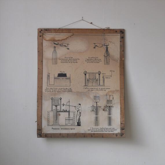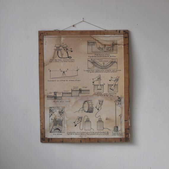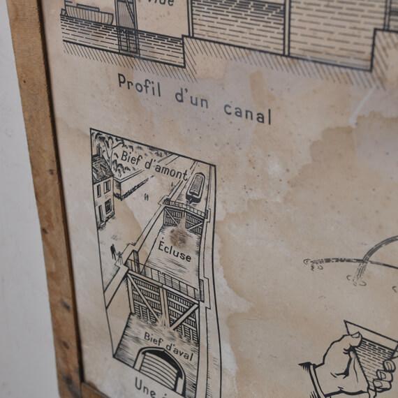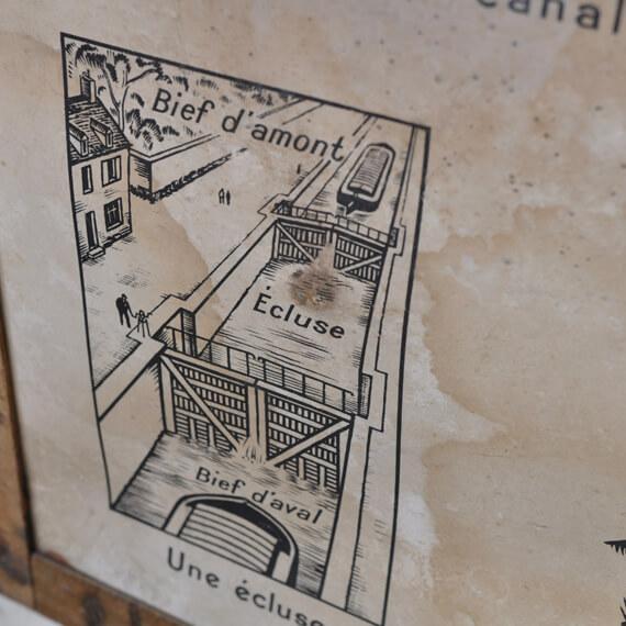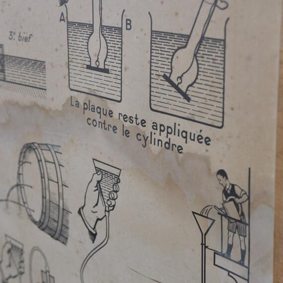 表裏の両面にプリントされたフランスのヴィンテージポスター。学校の教材として使われていたものです。インダストリアルな演出にいかがでしょう。