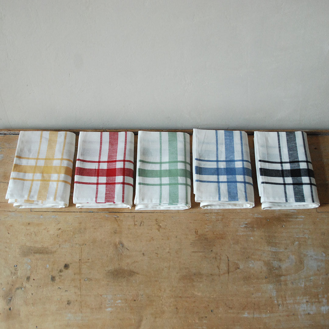ホワイト地にアクセントカラーを合わせたキッチンクロス・カマレは、ダイナミックでカジュアルな印象。程よい厚さで使い勝手のよい生地感です。組み合わせて贈り物にもおすすめです。