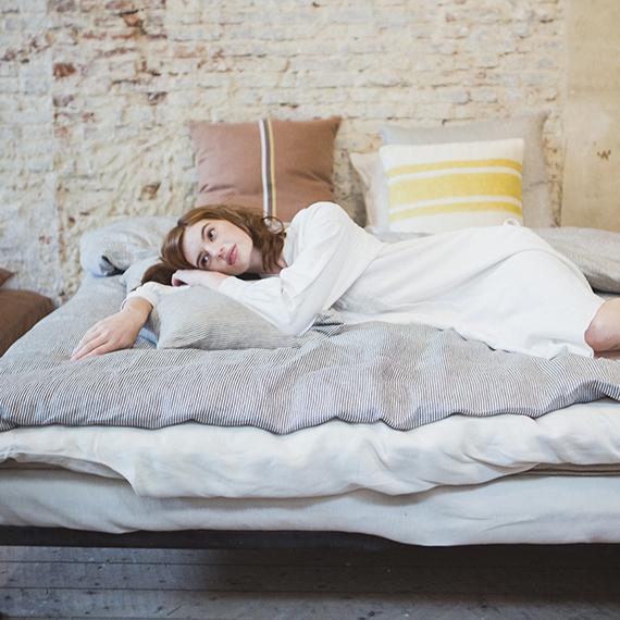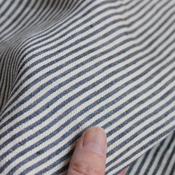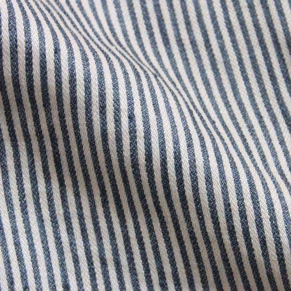 潔くクリアなイメージのデュベカバー・ワークショップストライプ。ネイビーとアイボリーが混ざり合い、霧がかった趣のあるピンストライプが特徴です。ほどよい厚さの綾織に、洗い加工をかけた柔らかな風合いの生地。デュベカバーの入れ口はビンの口のような形状をしたボトルネックで、マットレスに巻き込んだり、カバーの内側に折り込んで使用します。