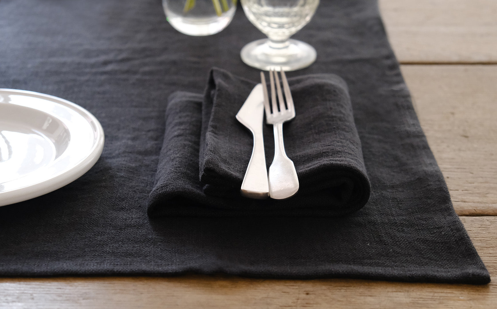 ▲コーディネート例2:一枚はナプキン、もう一枚はプレースマットに。ブラックを複数使って