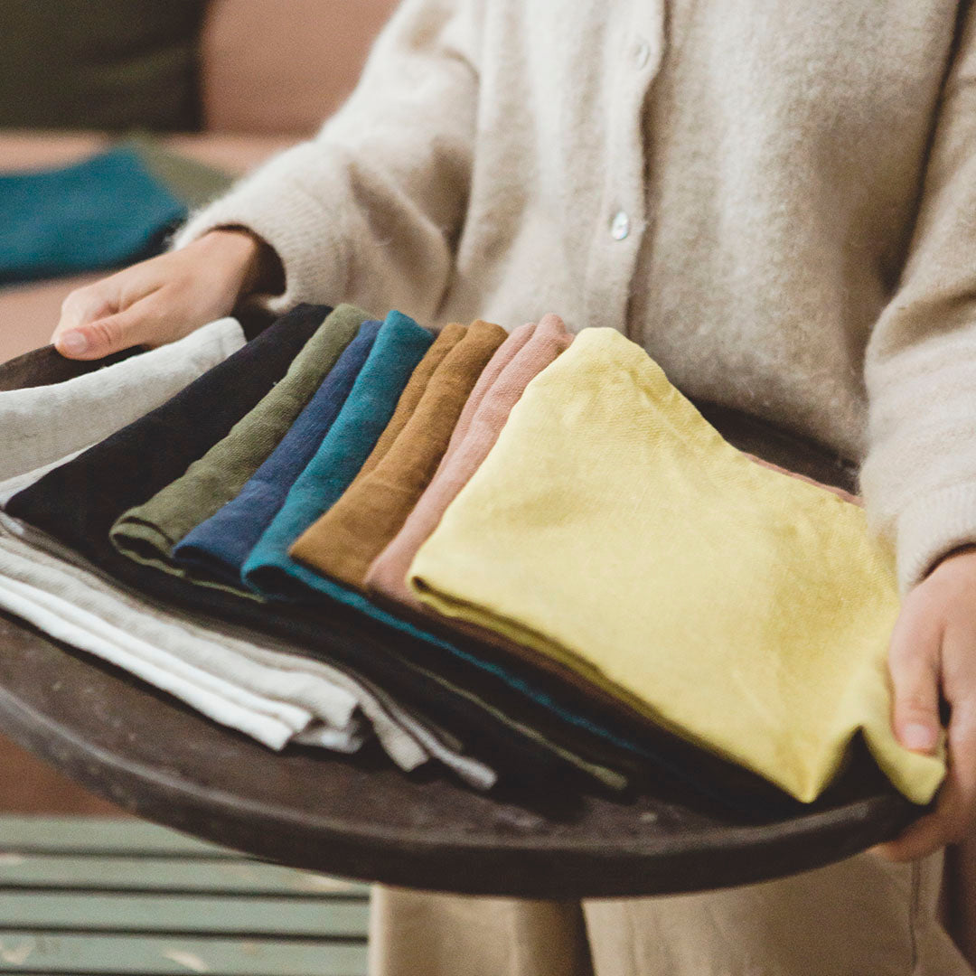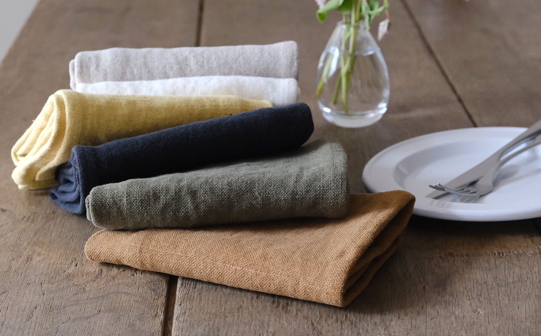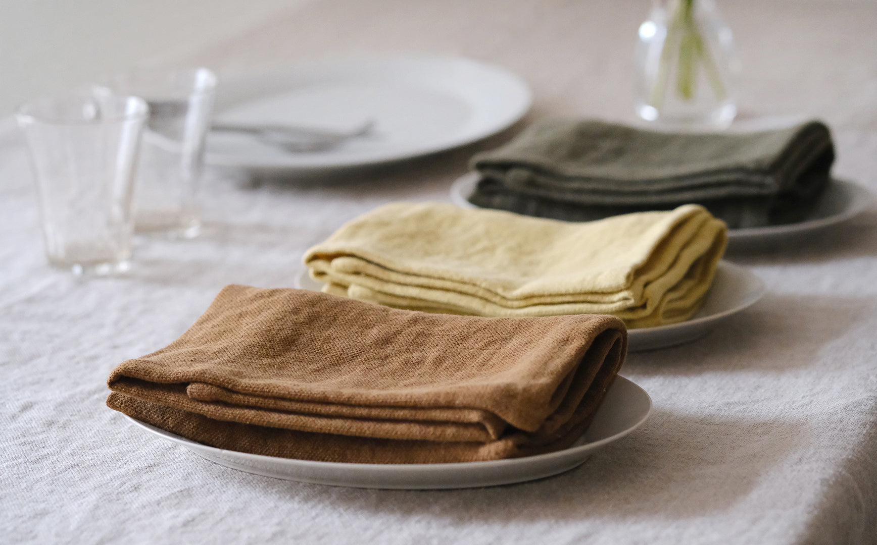 頼もしい使い心地のナプキンですので、ディッシュクロスやキッチンクロスとしてもよさそう。定番のリネンアイテムとしておすすめの一枚です。
