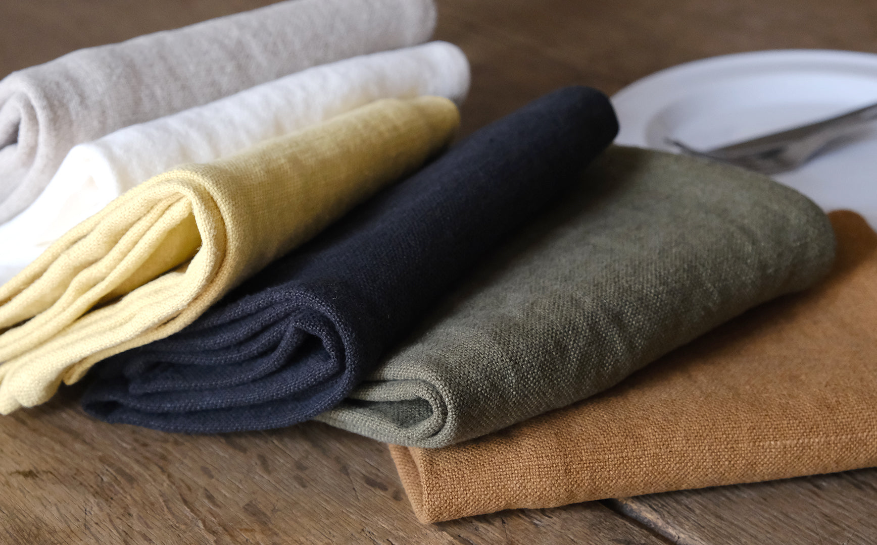 LIBECOの定番コレクション「ハドソン」のテーブルナプキンをご紹介します。しっかりとしたリネン生地でありながら、柔らかくてラフな風合いが魅力です。