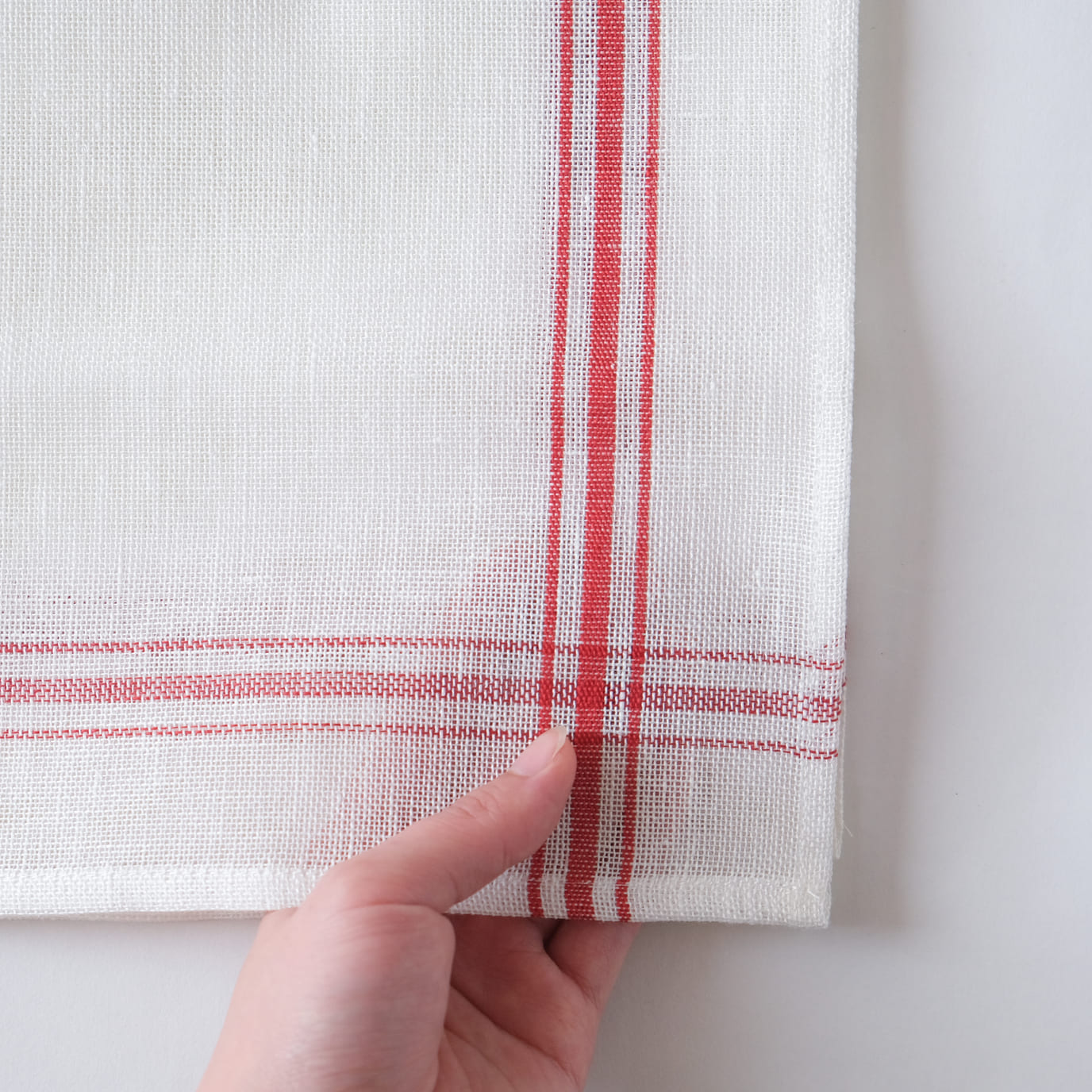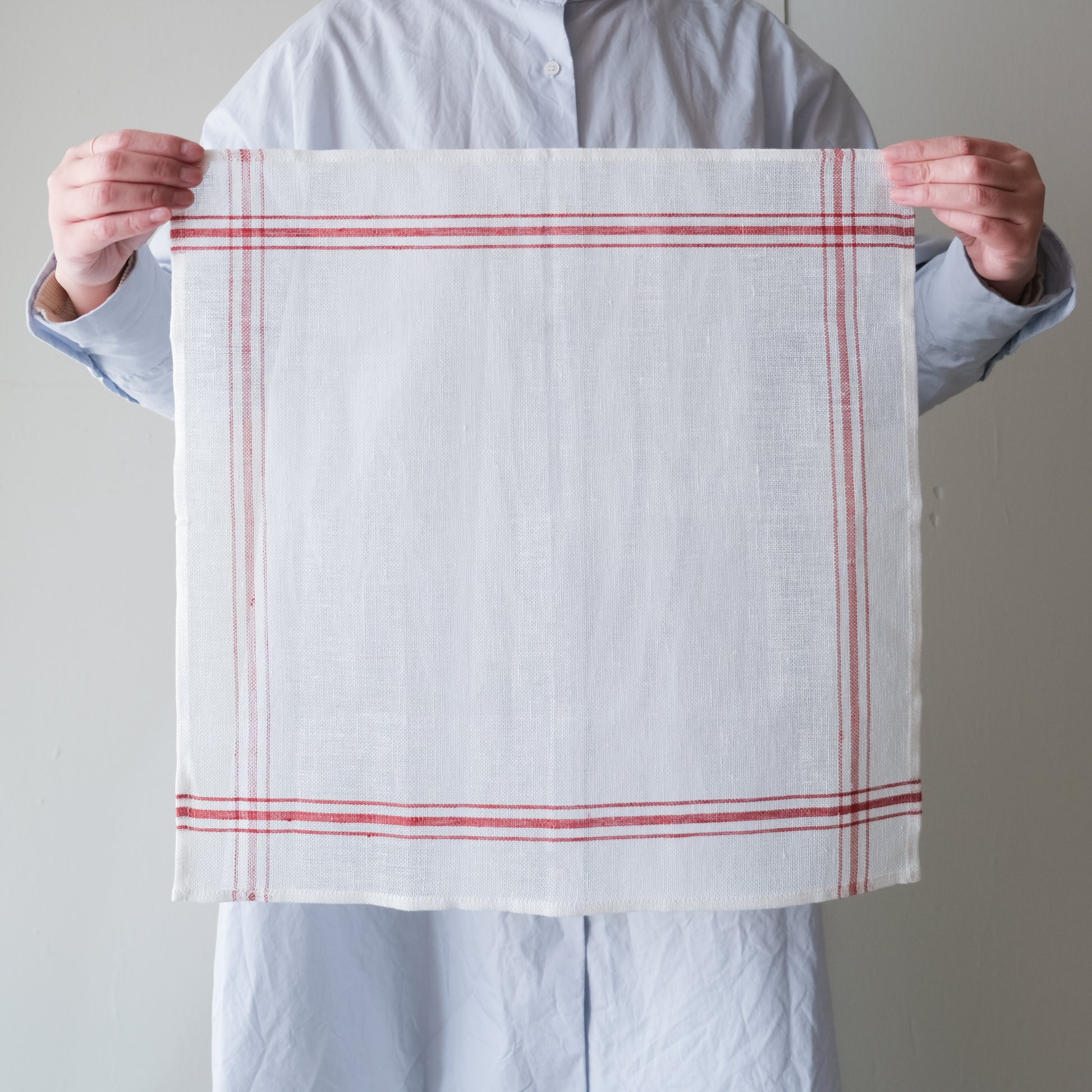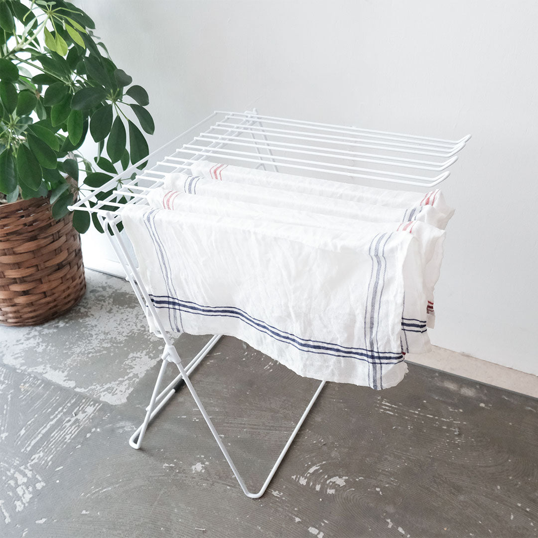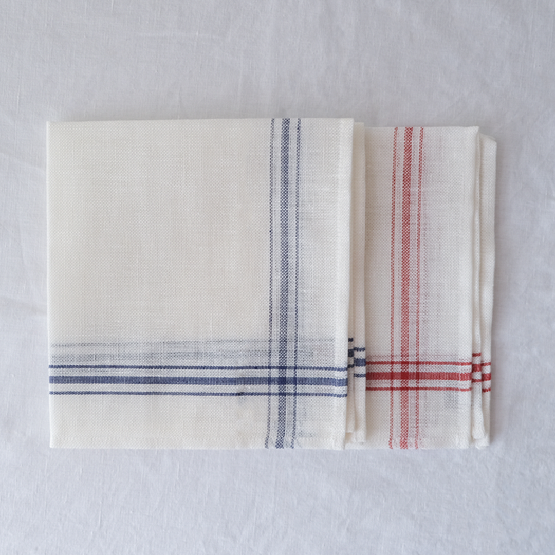 ベルギーリネンのブランドLIBECOの定番キッチンクロス「コンフィチュール」。コンフィチュールとはフランス語でジャムのことです。大判で目の粗い生地は、もともとはジャムを漉すときに使われていました。サイズは普通サイズと、こちらでご紹介しているミニサイズの2つ。小さいのがあったらいいなの声にこたえて、あとからミニをつくりました。普通サイズは赤だけですが、ミニサイズは赤ライン、青ラインの2色ご用意しています。