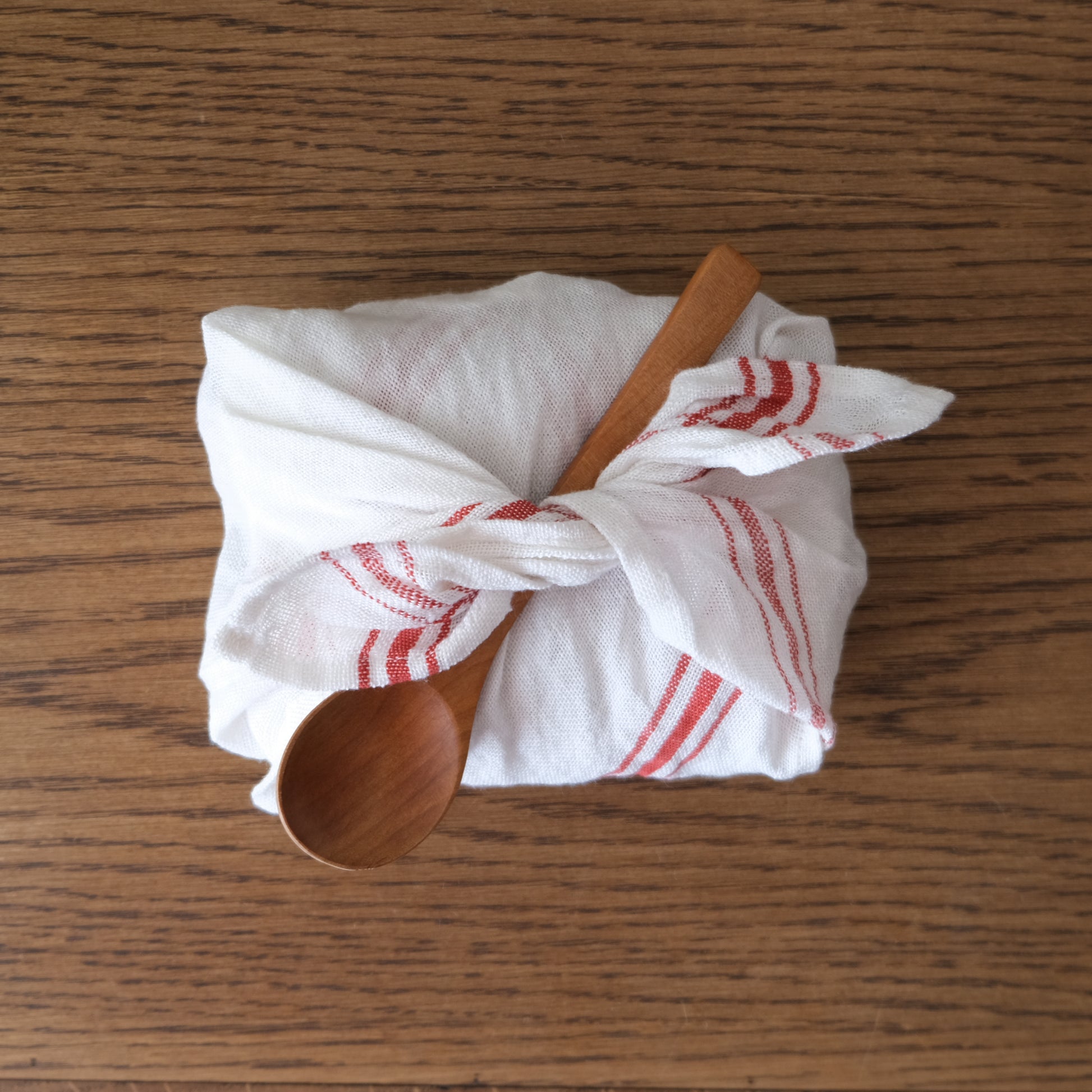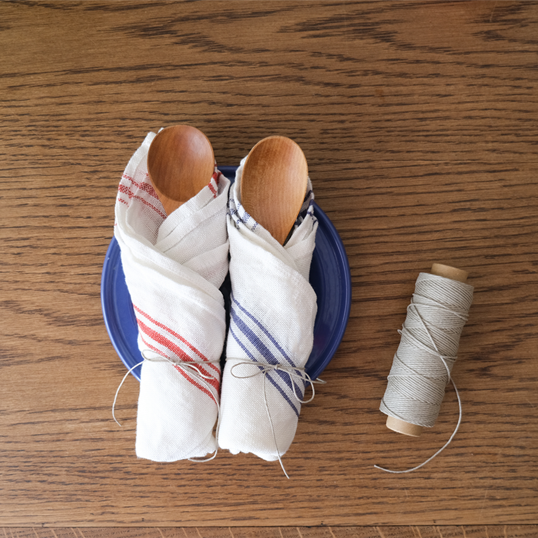 お弁当を包んだり、キャンプのときのお手拭きにしたりと、家でも外でも役に立ってくれます。▲プレースマットにもちょうどいいサイズです