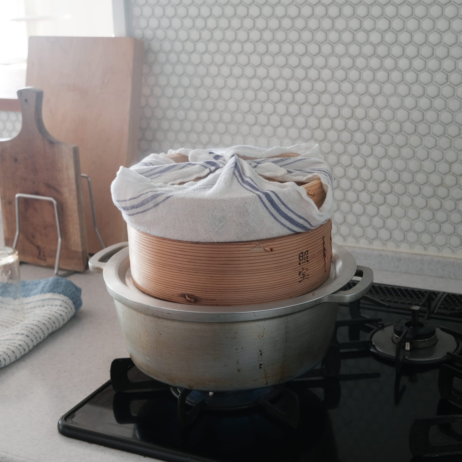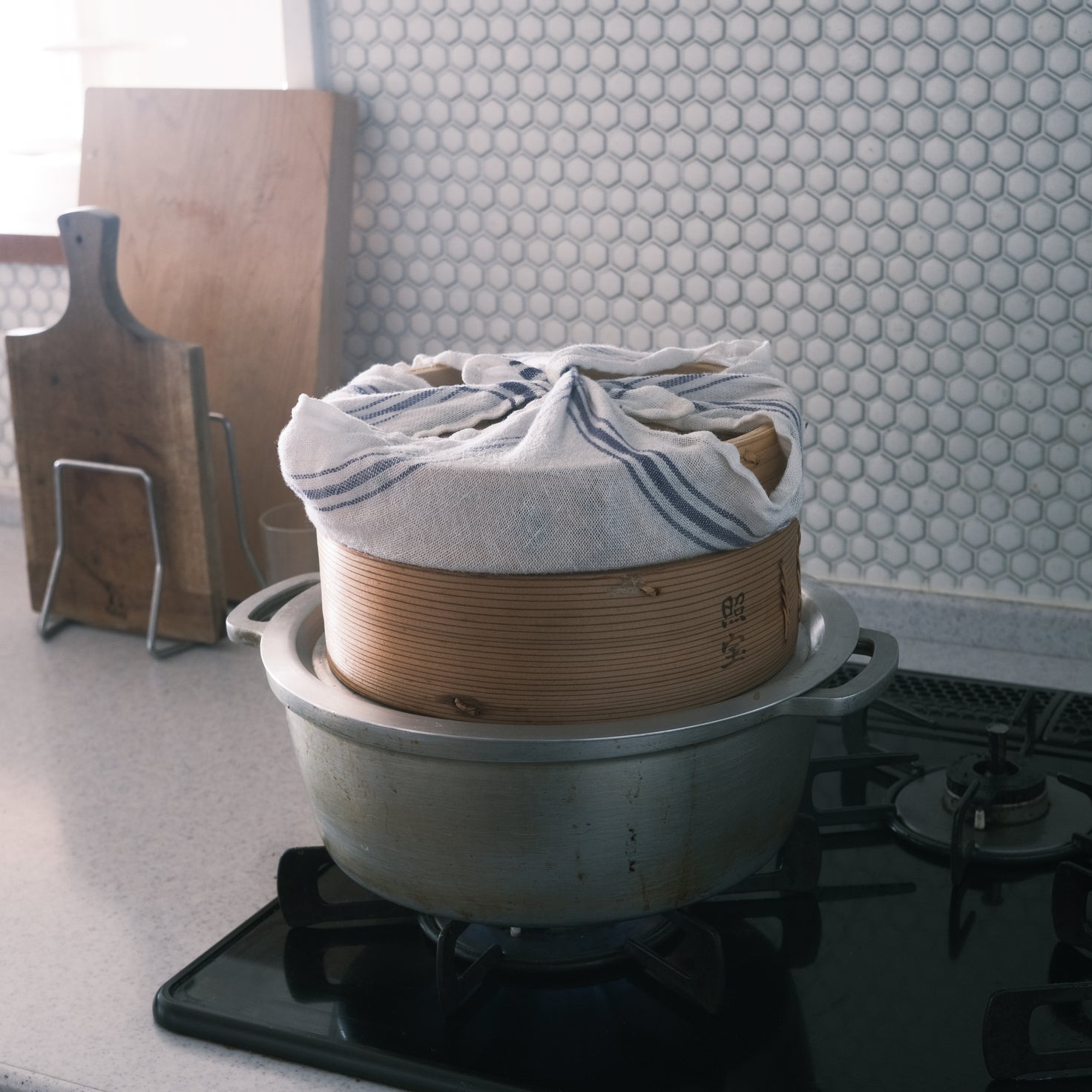とはいえやはり、本業は家の台所での活躍。食器拭き、手拭きタオルとしてももちろんですが、かつお節で出汁を取ったり、せいろ蒸しをするときにも便利です。
