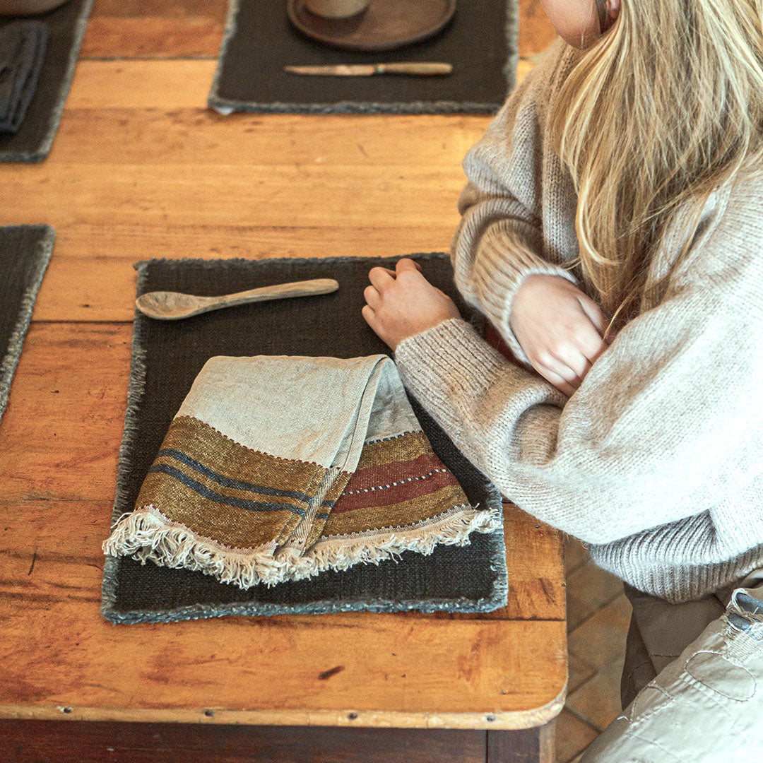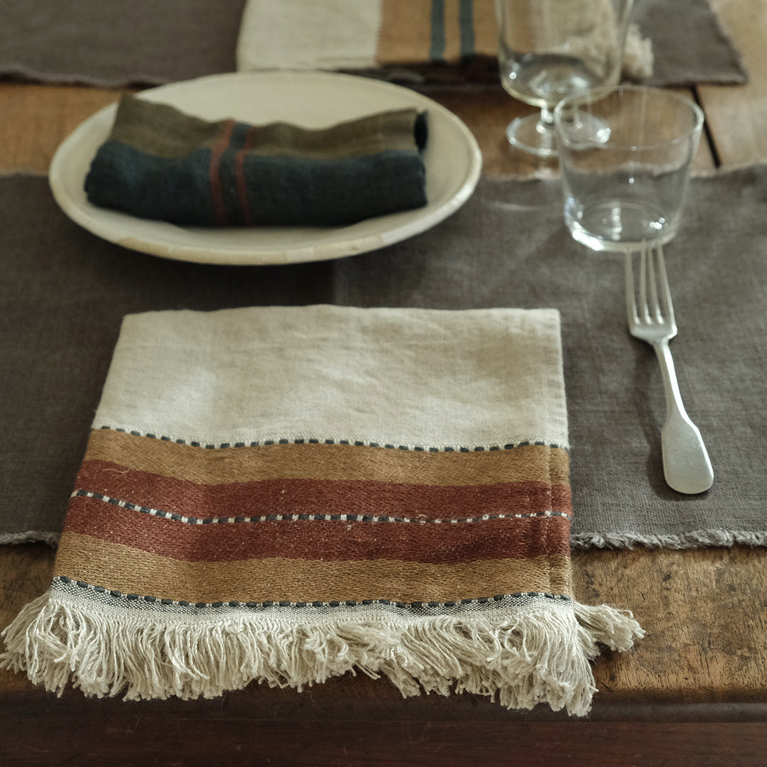 ベルギーリネンのブランドLIBECOの定番「ベルジャンシリーズ」のテーブルナプキン・ヒルサイド。スローベルジャンと同様に、ざっくりとした平織でさらっとした風合いのリネンが特徴です。