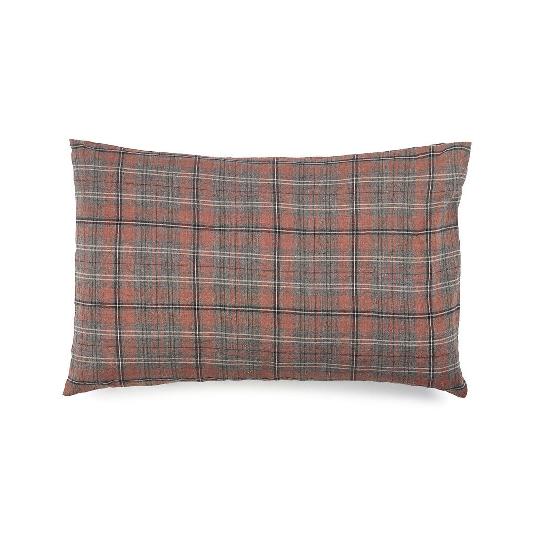 洗練されたチェック柄のLIBECOのピローケース「ジュード」。インテリアに馴染みのよい、華やかさとコーディネートのしやすさを兼ね備えたオーソドックスなチェックがおすすめの一枚です。