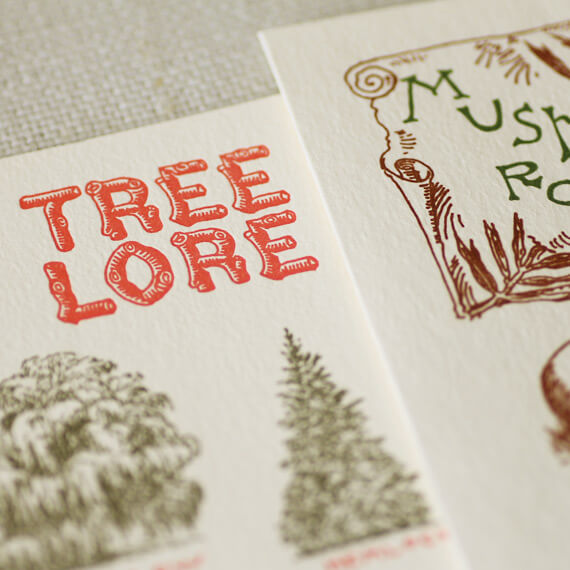 活版印刷でプリントされたグリーティングカード。リサイクルペーパーのエンボスと色の濃淡が味わい深いです。