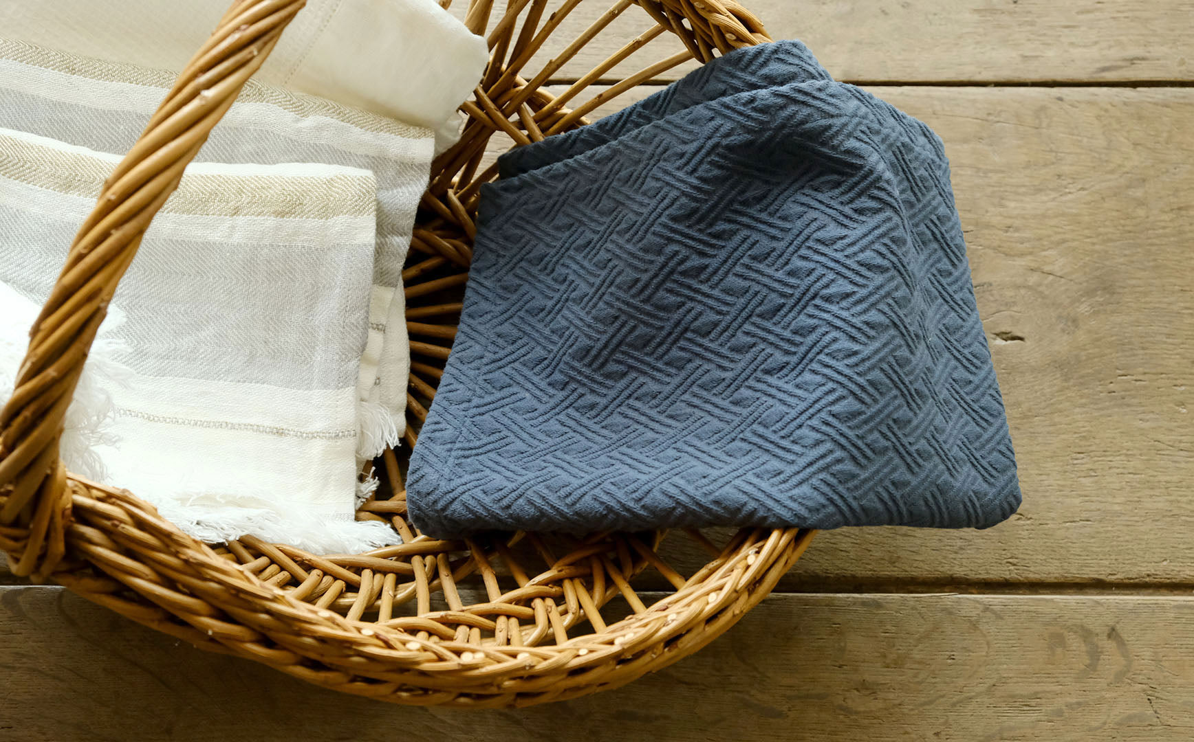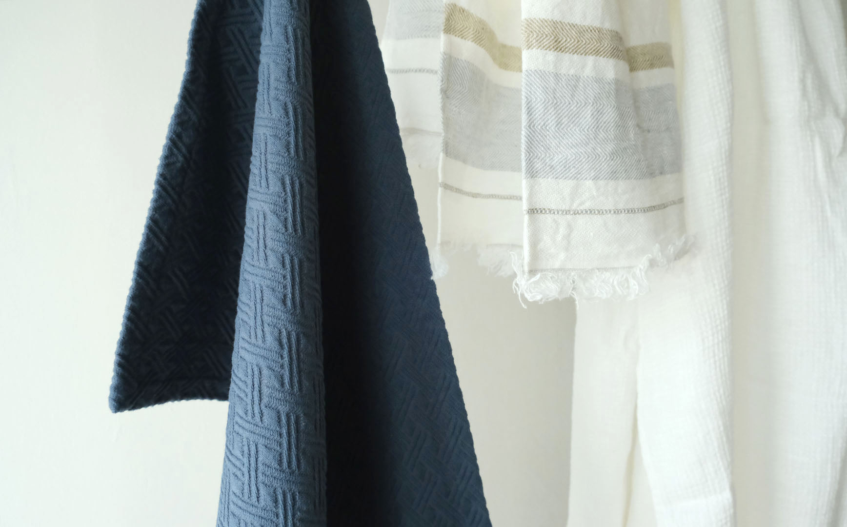 織り柄のうつくしいコットン100%の生地でバスマットをつくりました。厚すぎず洗いやすいコンパクトな生地なので、乾きにくさもなくいつでも清潔に使えます。