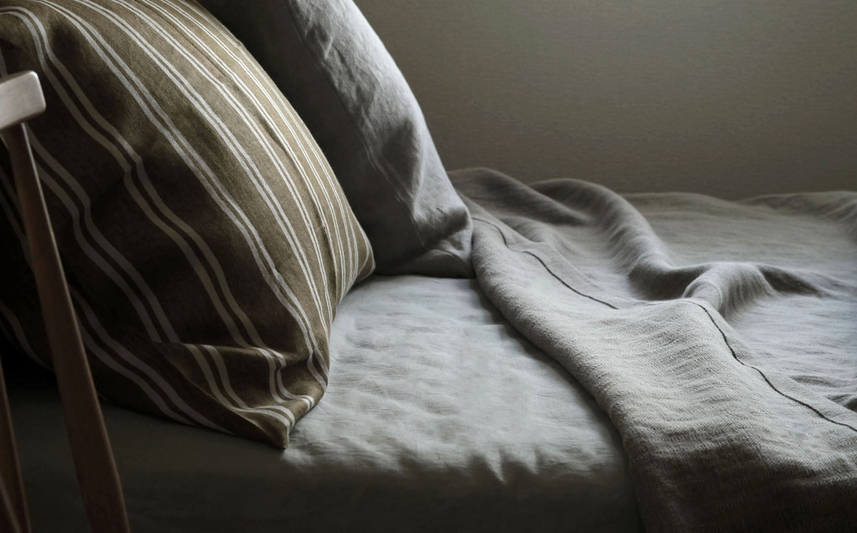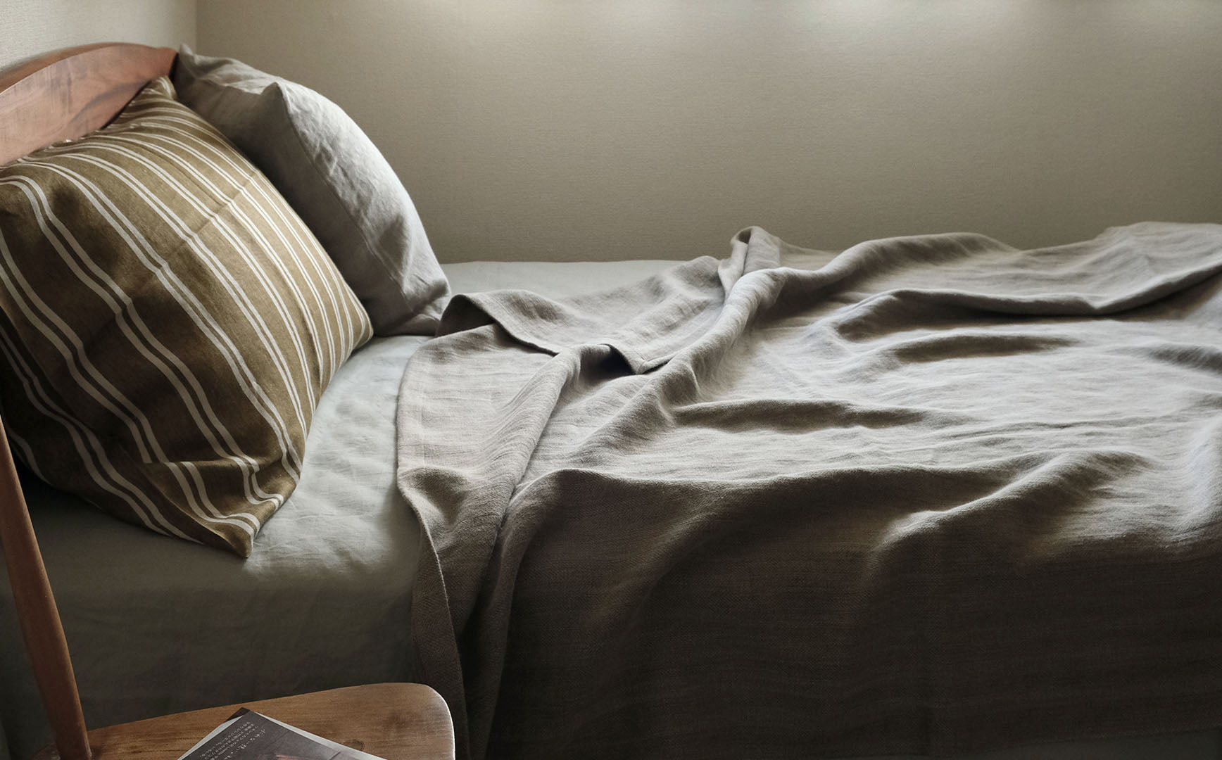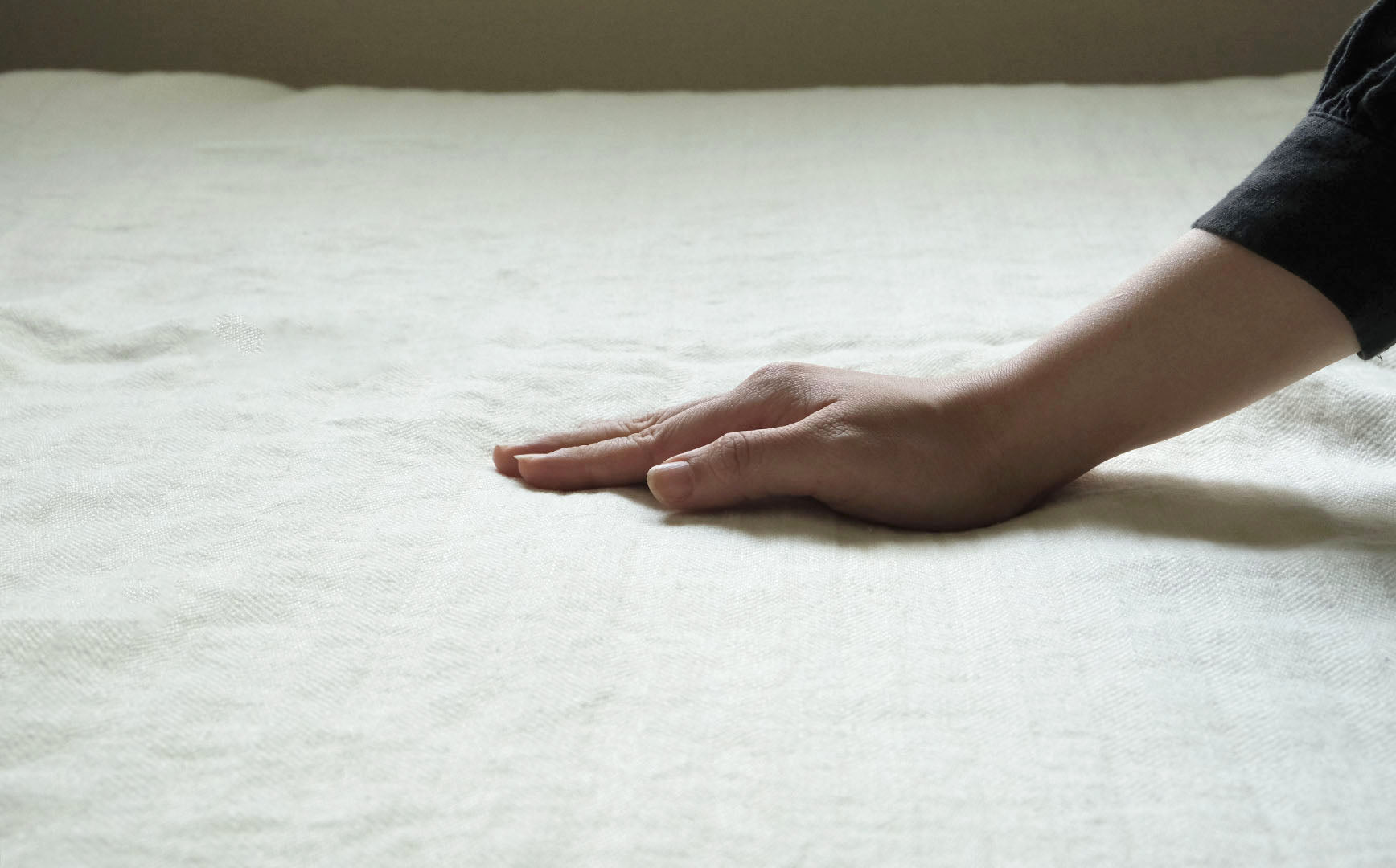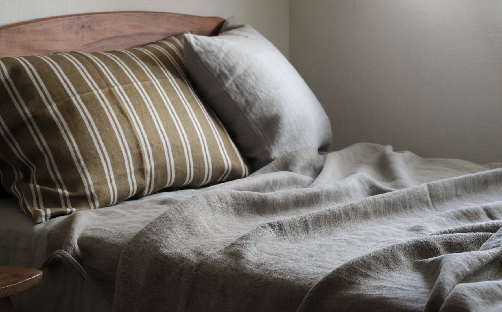 さらっとしていて、吸水・吸湿性に優れたリネンはベッドリネンに最適な素材です。湿度や汗が気になる季節にはより涼やかで心地よく使えます。