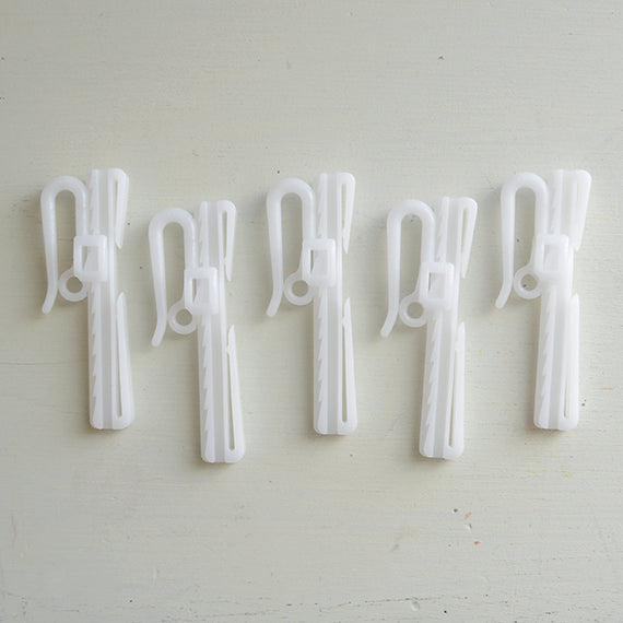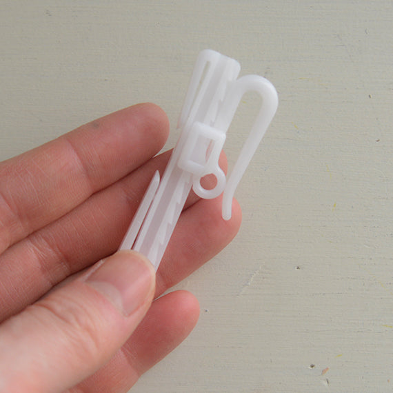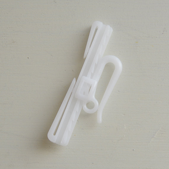 フラットカーテン用のアジャスタフックです。カーテンの表面にフックの跡が映らないので、カーテンがきれいに仕上がります。