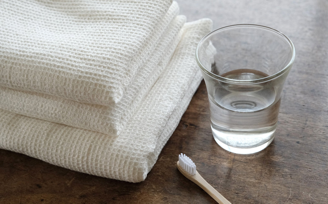 国内で丁寧に織られたワッフル生地でタオルをつくりました。リネンタオルを暮らしに取り入れてみたいと思ったときに試して欲しいのがワッフル織のリネンタオル。
