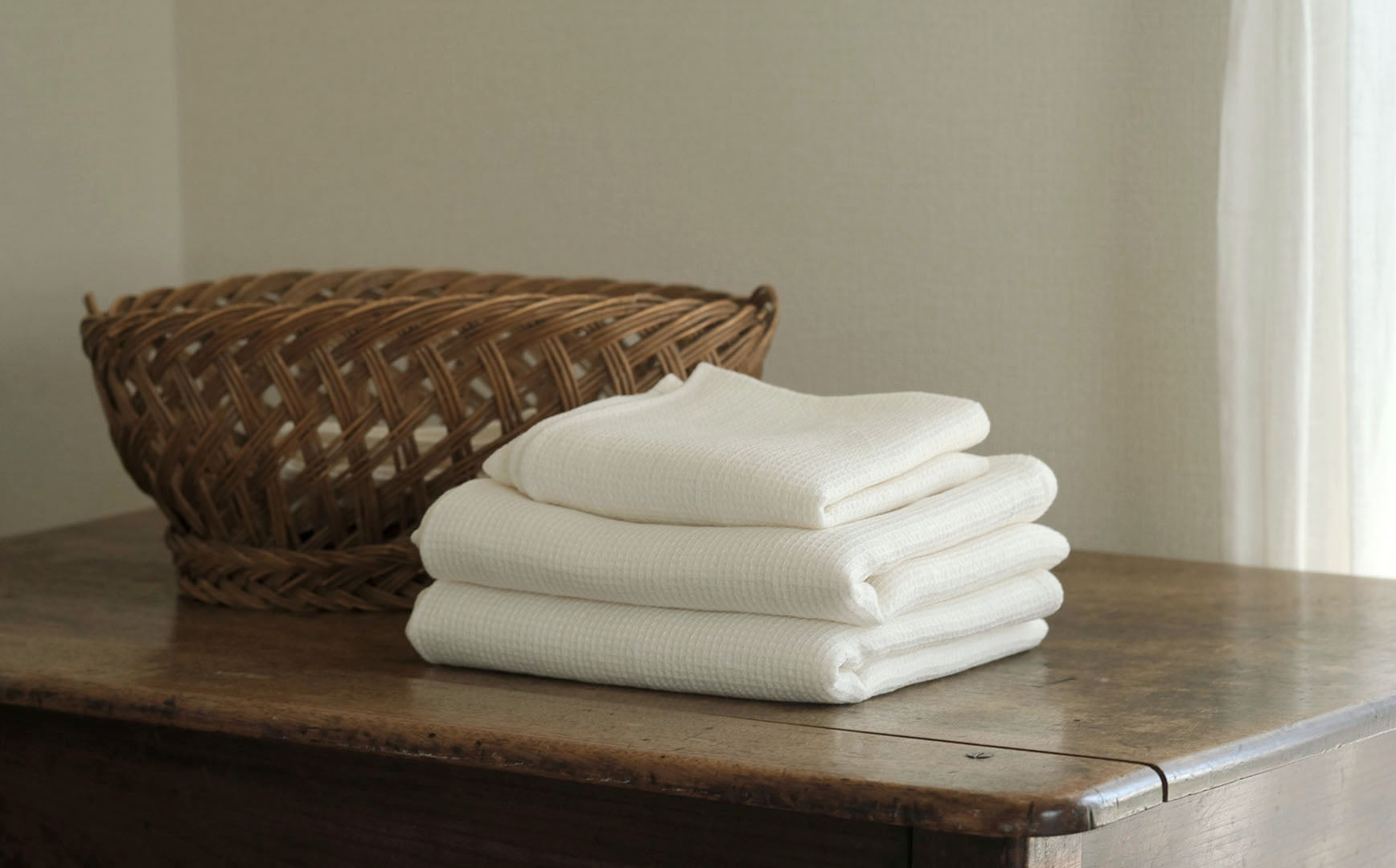 さっぱり、さらっと気持ちよく使える。リネンワッフルタオル