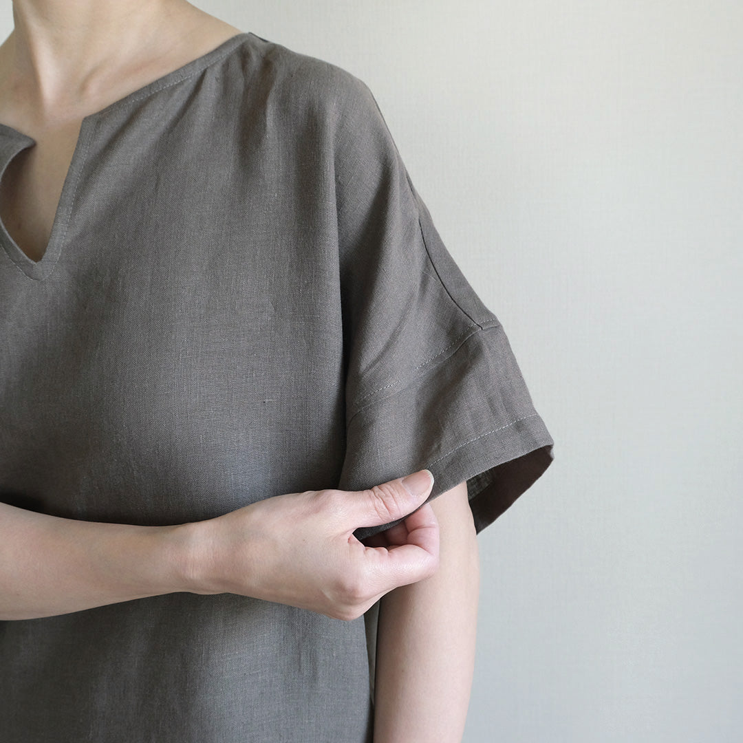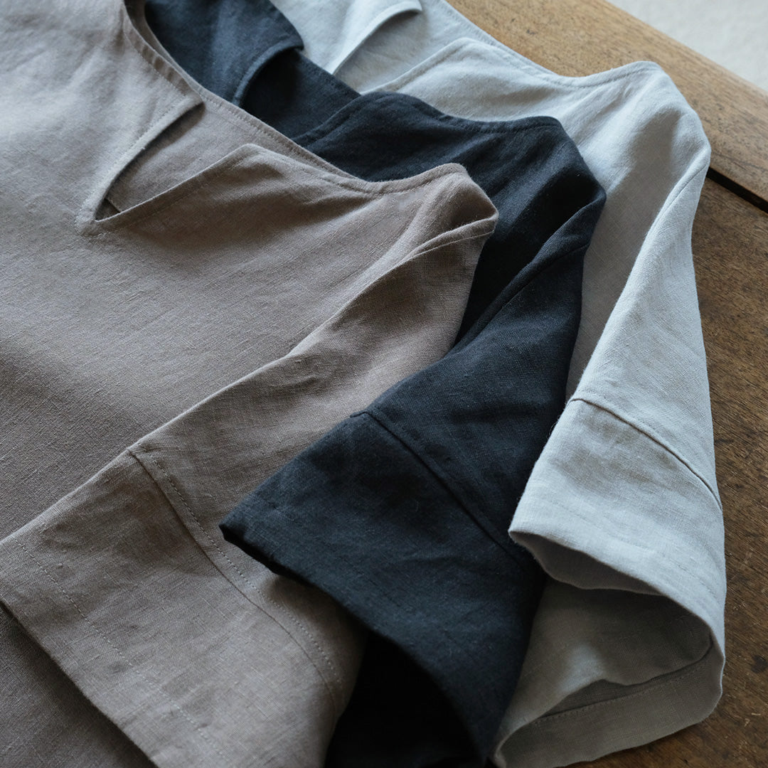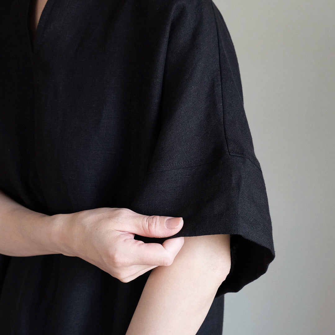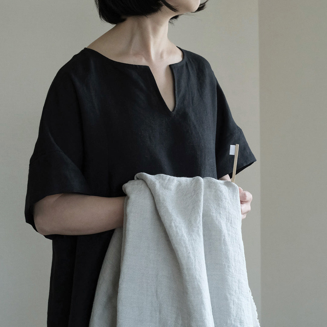 上質なベルギーリネンで仕立てたカフタンは、眠りのときも家でのひとときも、自分を労わる一枚になってくれますよ。