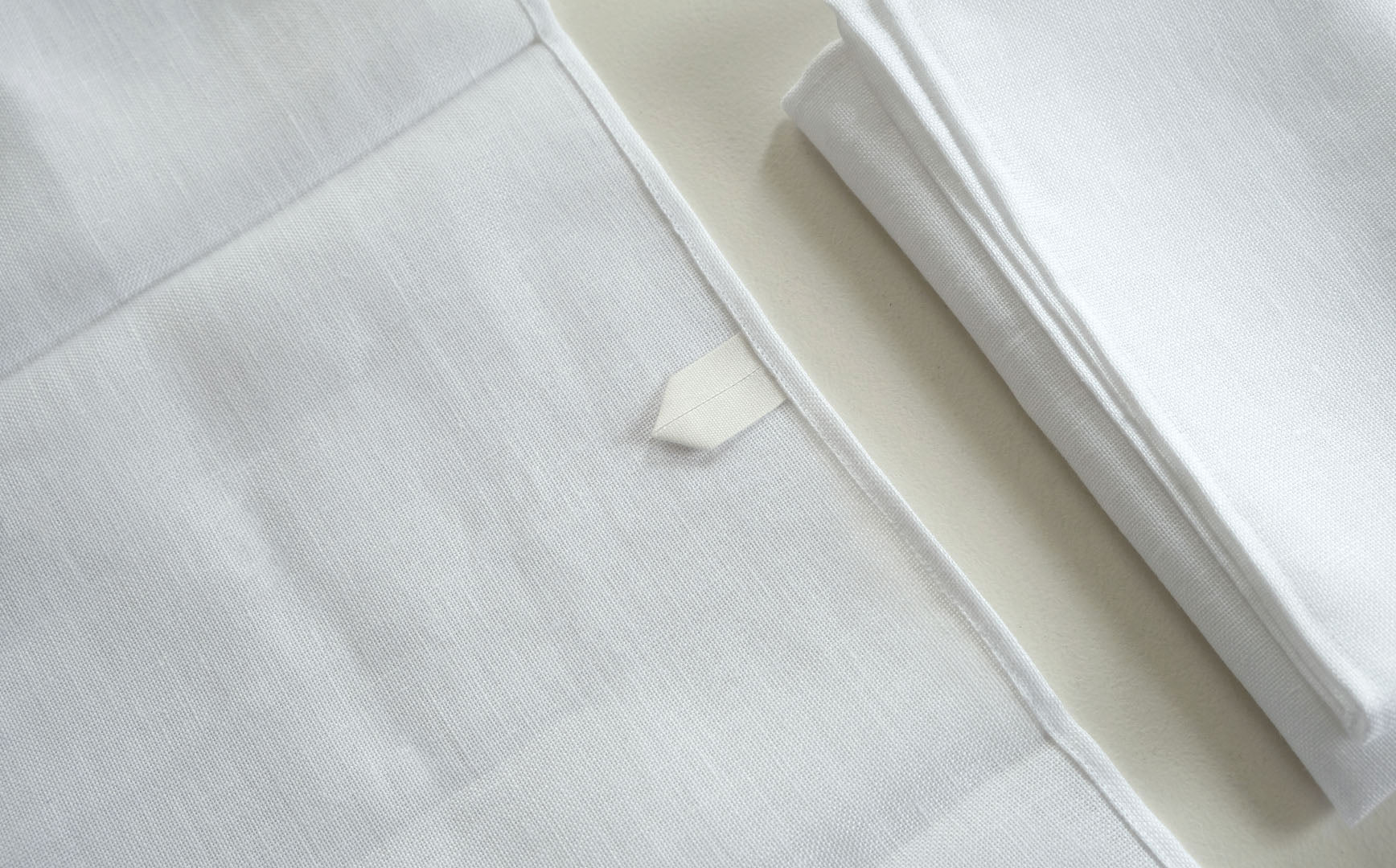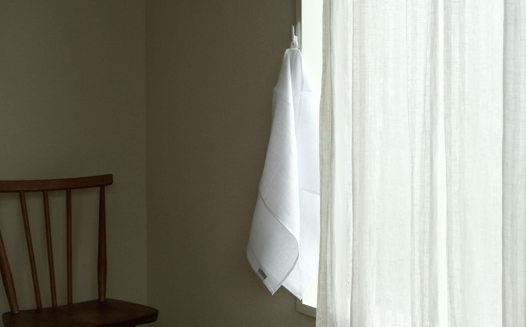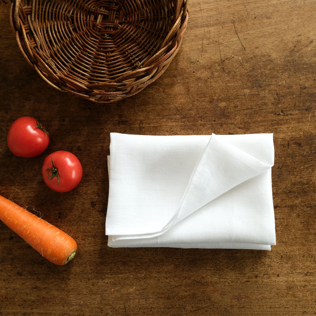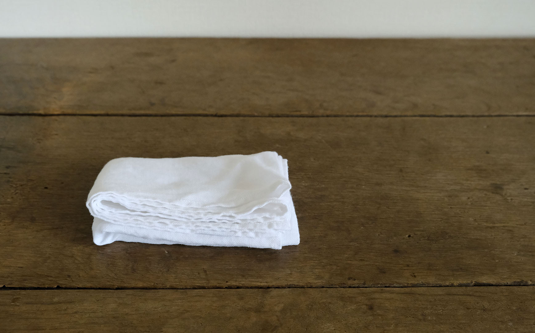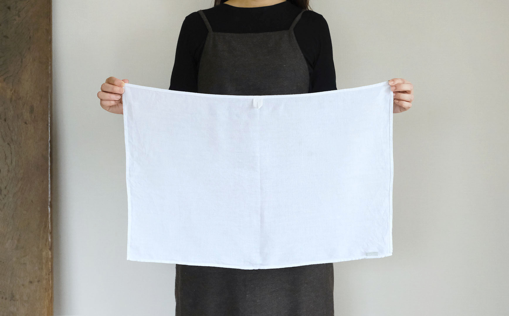 無個性さが魅力の白いベルギーリネンのキッチンクロス。スタンダードで飽きの来ない、日常に馴染むものをつくりました。