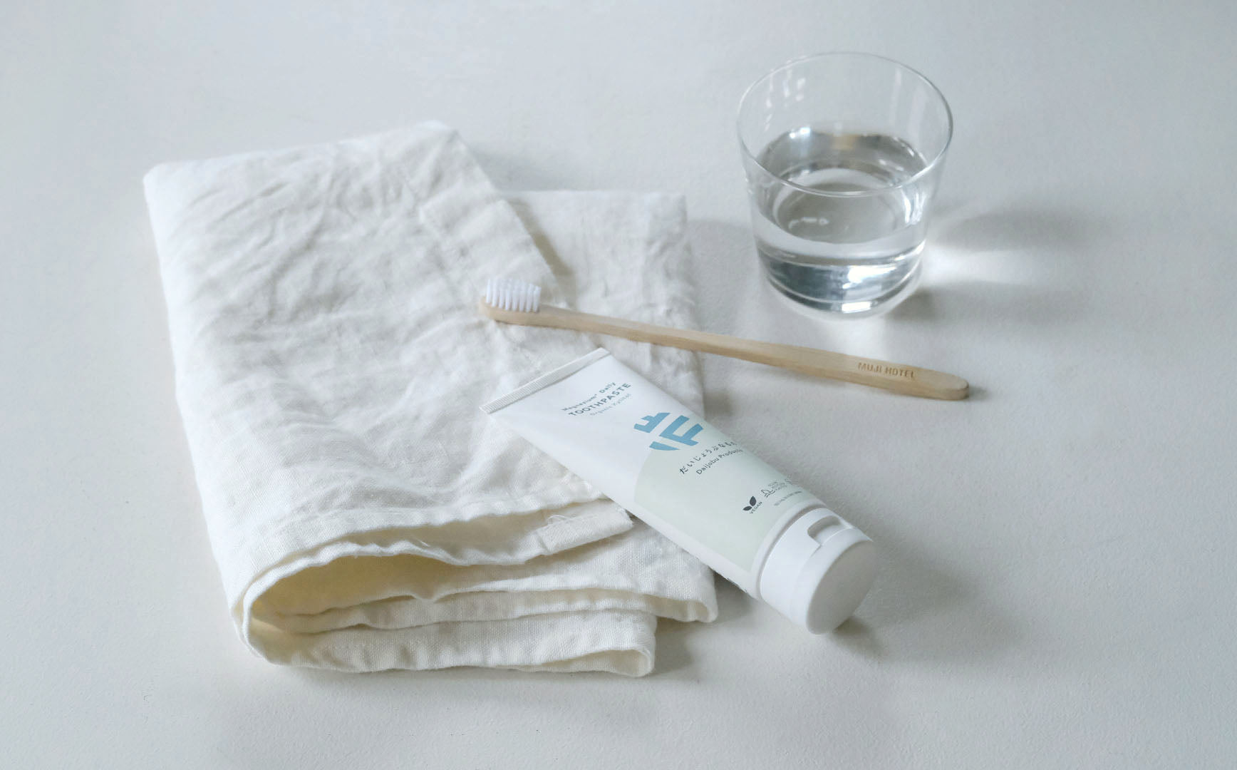 ループ状のパイル織タオルとは対照的に、嵩の張らない「タオルヘリテージ」は使い勝手も見た目もスマート。