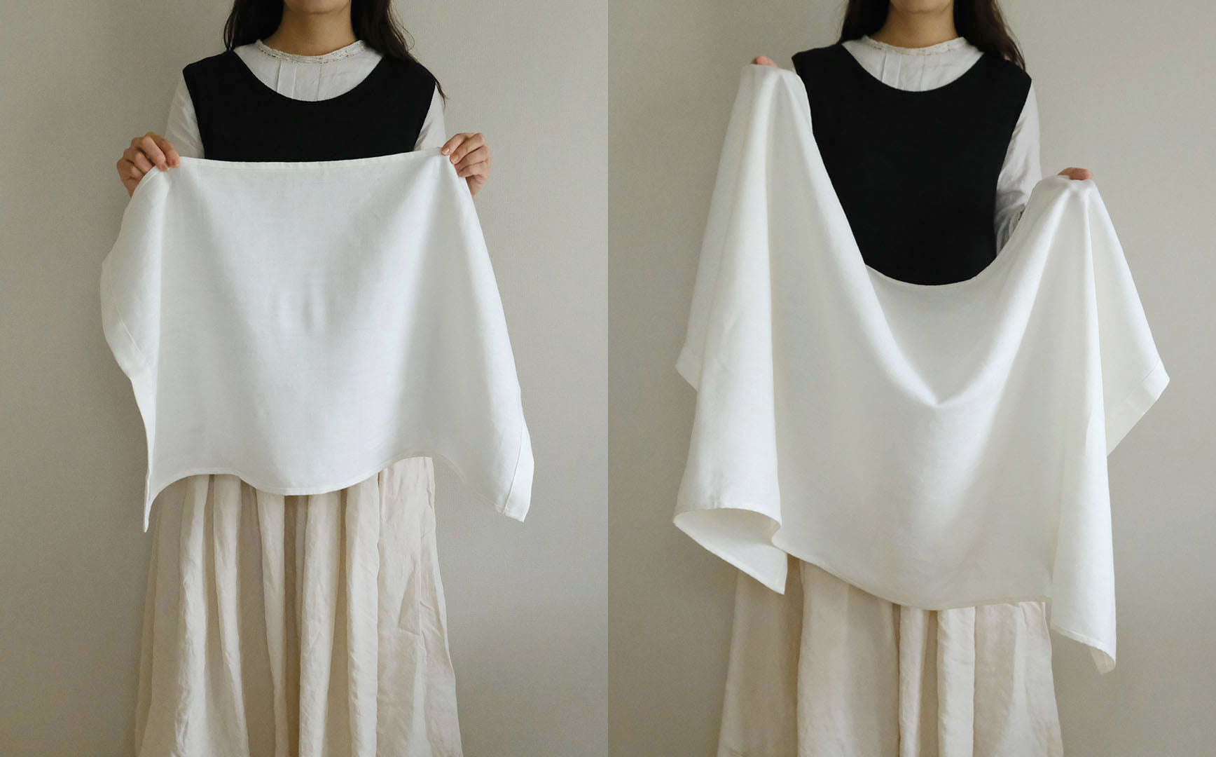 洗いによる変化の比較はこちら。表面に残っていた糊がとれ、糸がふっくらと空気を含んでしなやかな肌触りに。
