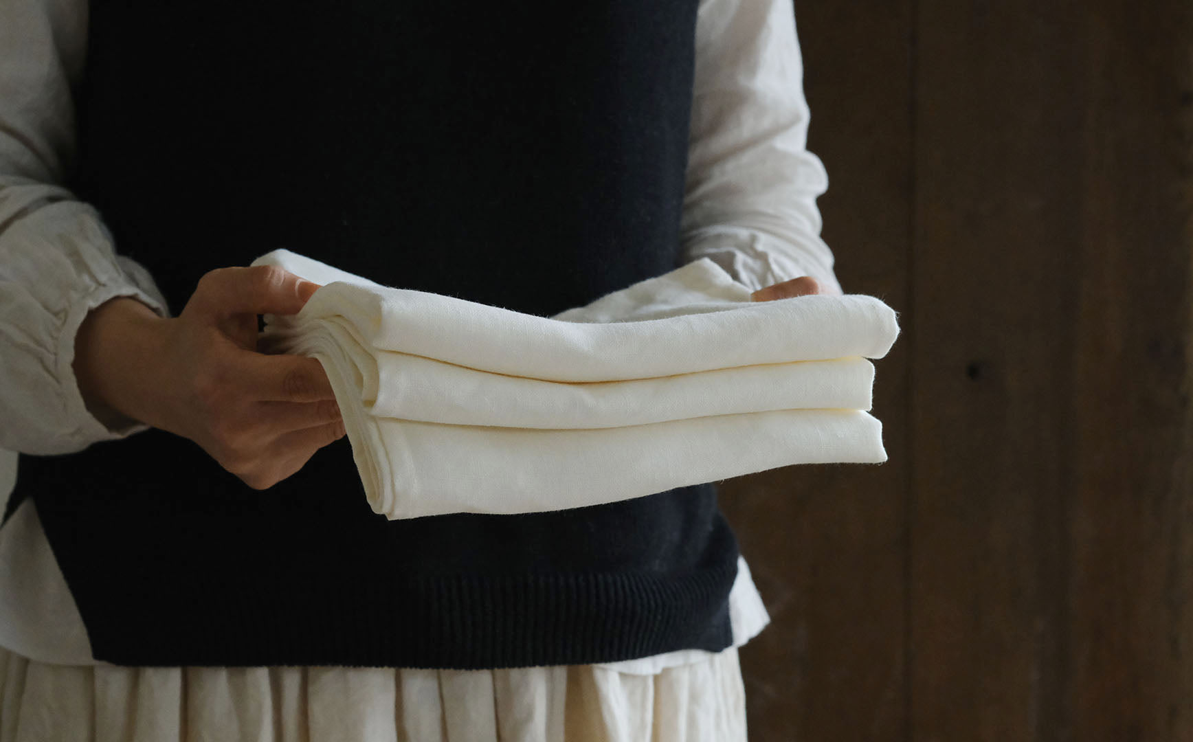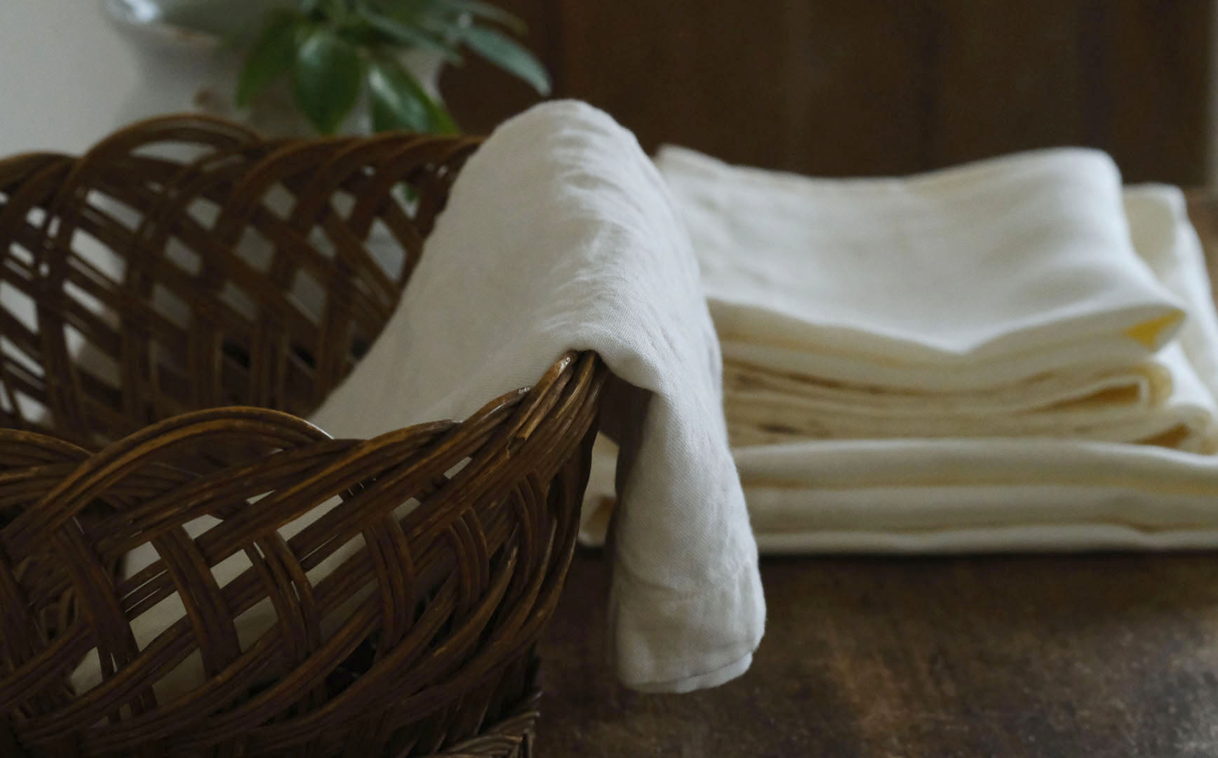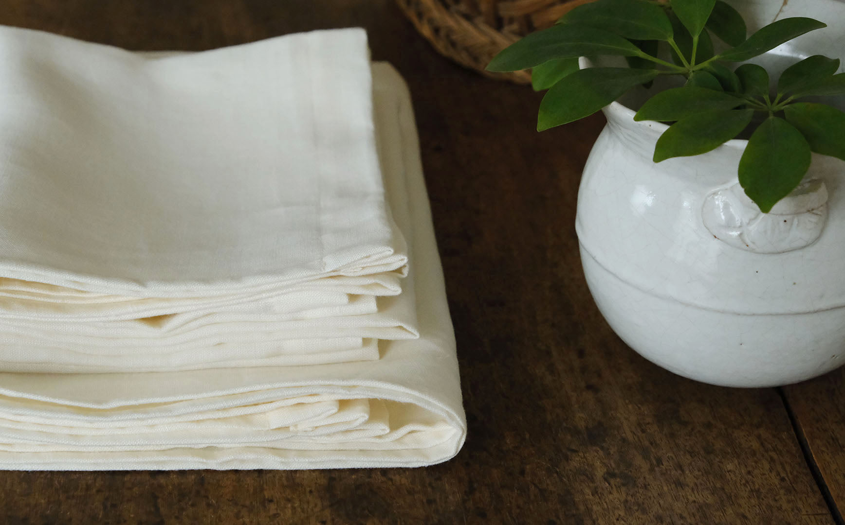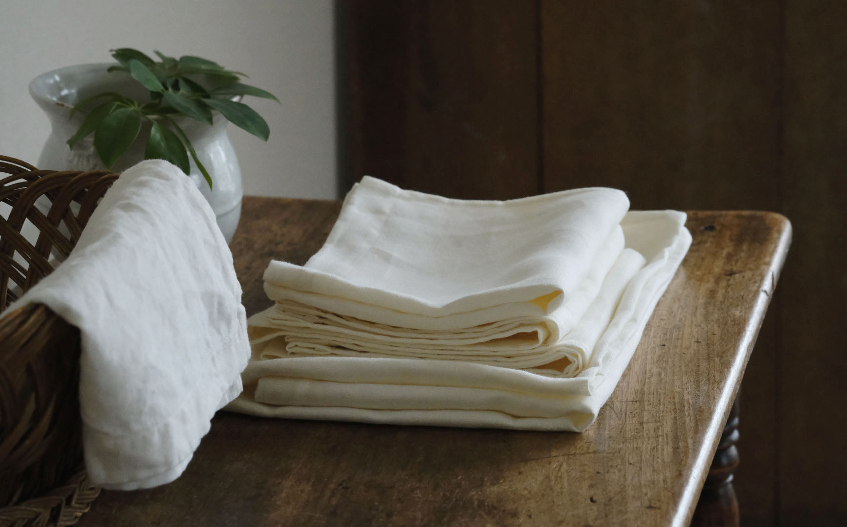 さらっと軽やかなベルギーリネンの魅力そのままの平織タオルをつくりました。洗いざらしのしなやかなオーガニックリネンの使い心地と、乾きのよさに富んだ一枚です。