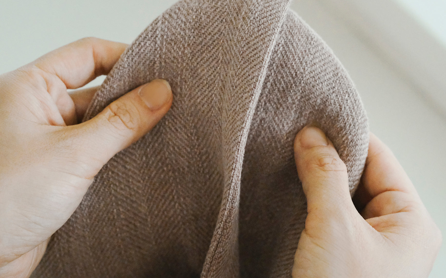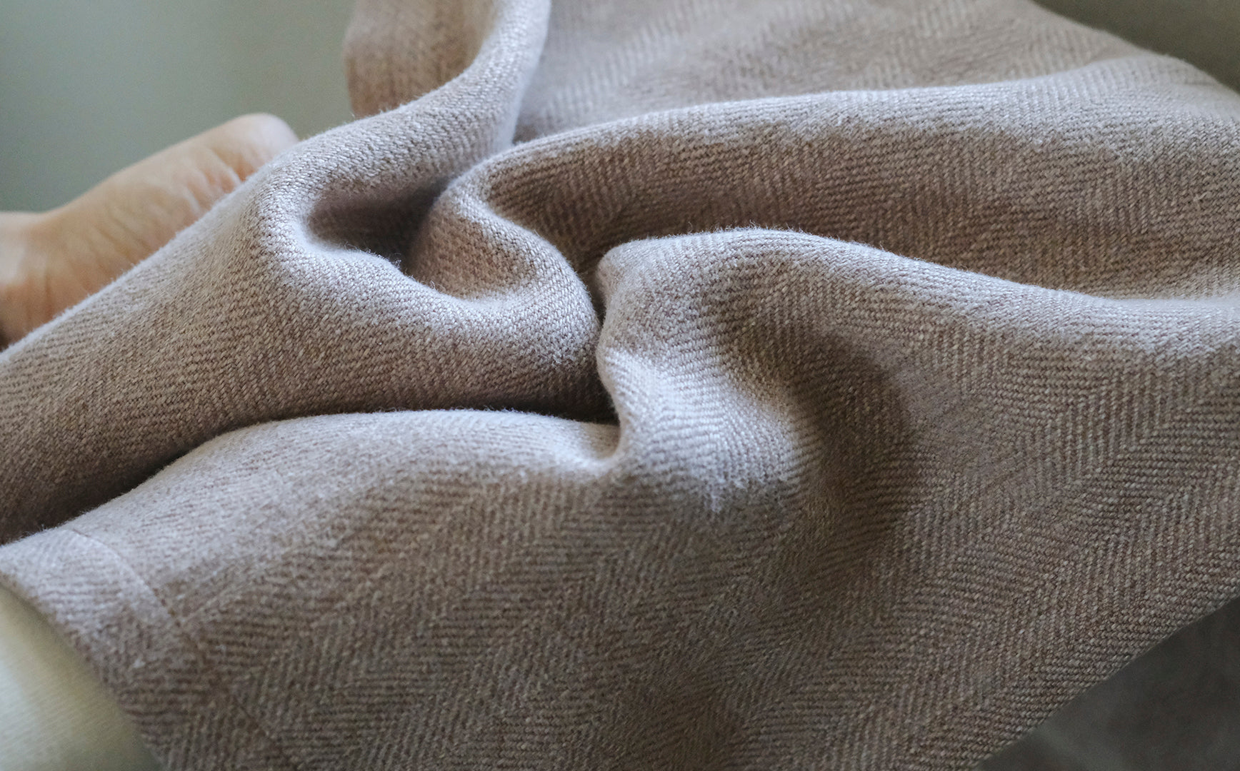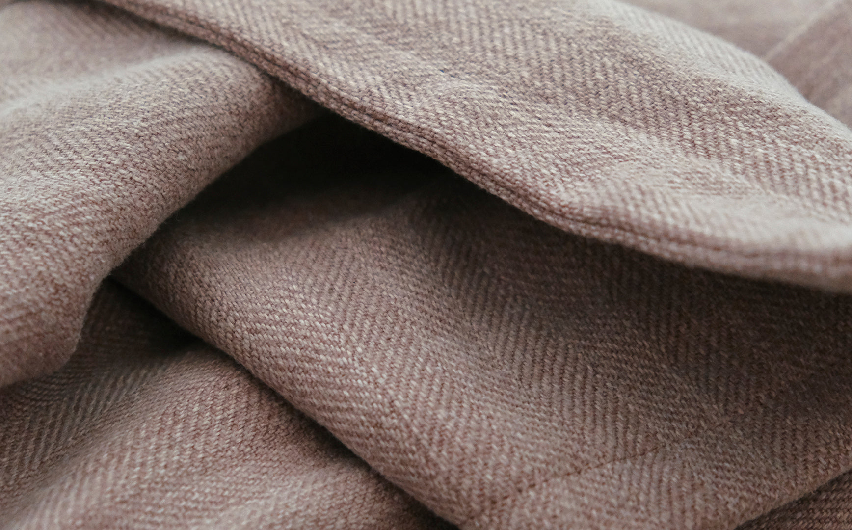 ▲くったりとした肌触りに繊細な凹凸で表現されたヘリンボーン織。見た目以上に強度もあります