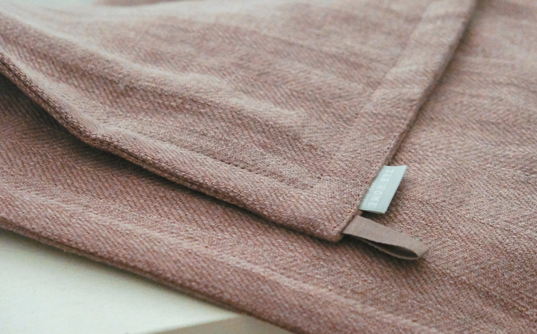清潔感のある、淡く上品なピンクのリネン生地でバスラグをつくりました。やわらかな感触のコンパクトなサイズ感は洗濯機でさっと洗え、その日のうちに乾きます。