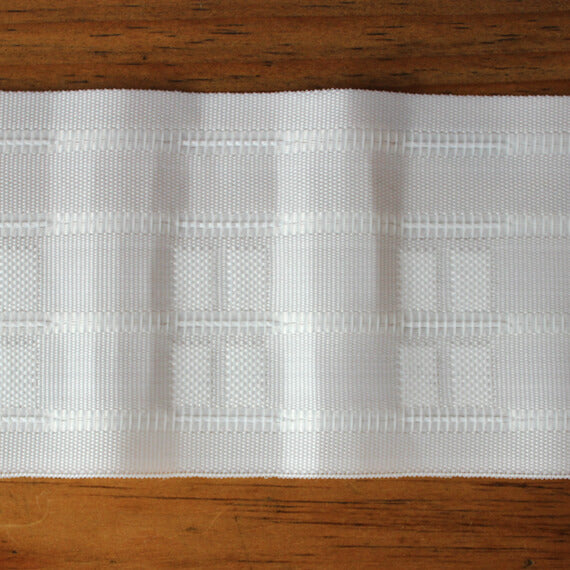 きれいなギャザーが簡単に作れる専用のテープ。カーテンにしたい布の上部裏側に縫い付けて使います。カーテンの仕上がり幅をレール寸法の1.5~2.5倍にして、引き出す紐の長さによりギャザーを調整することができます。大きめのカーテンにおすすめです。専用のギャザーフックと合わせてご利用ください。