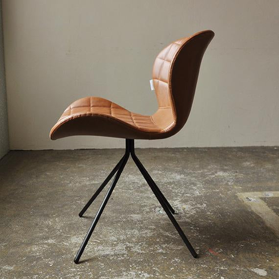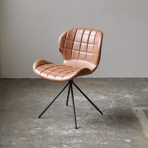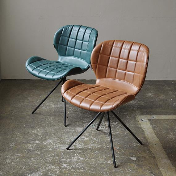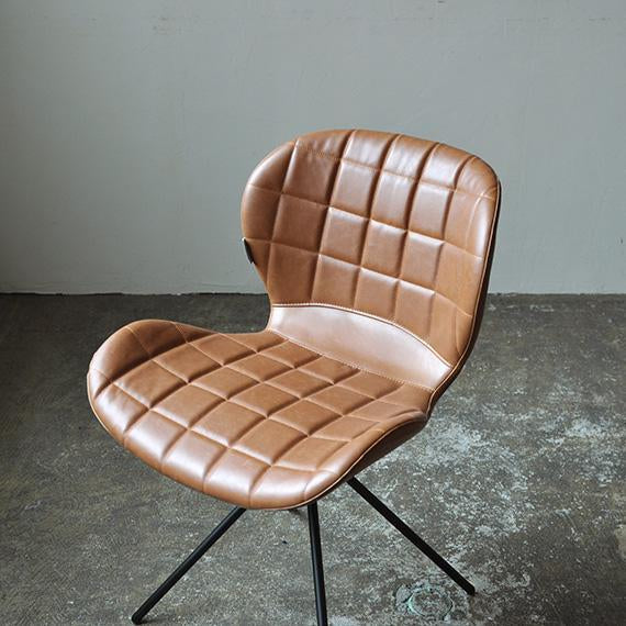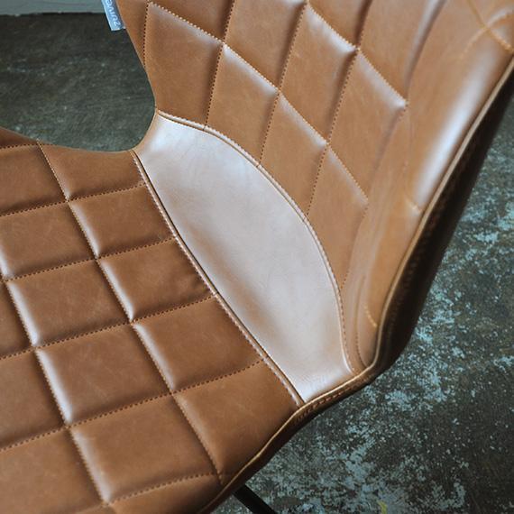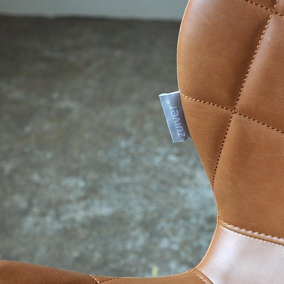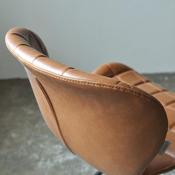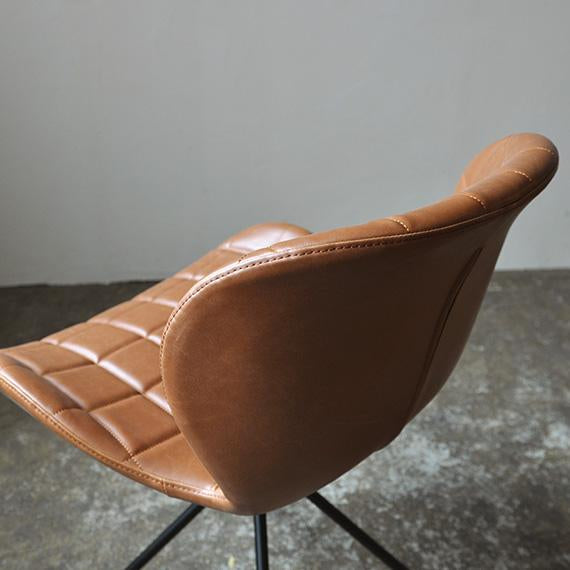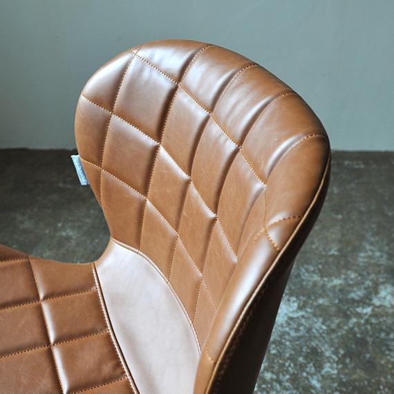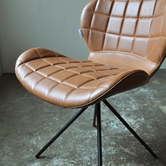包み込むようなホールド感を持つ丸みのあるフォルムと細いレッグが特徴のチェア張り地は弾力があり、柔軟性が高いレザー(ポリウレタンレザー)、中材には高密度ポリウレタンフォームを採用しています。