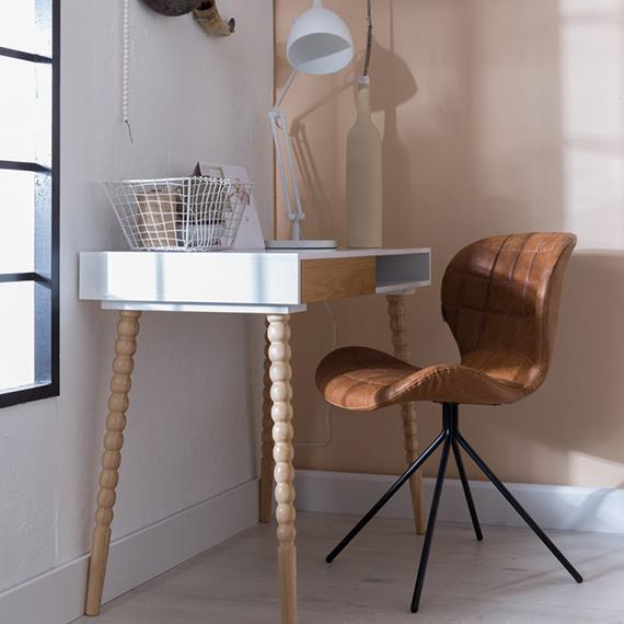 座り心地の良さはダイニングエリアだけでなく、書斎やオフィスにも。色はブラウン、ペトロールの色からお選びいただけます。