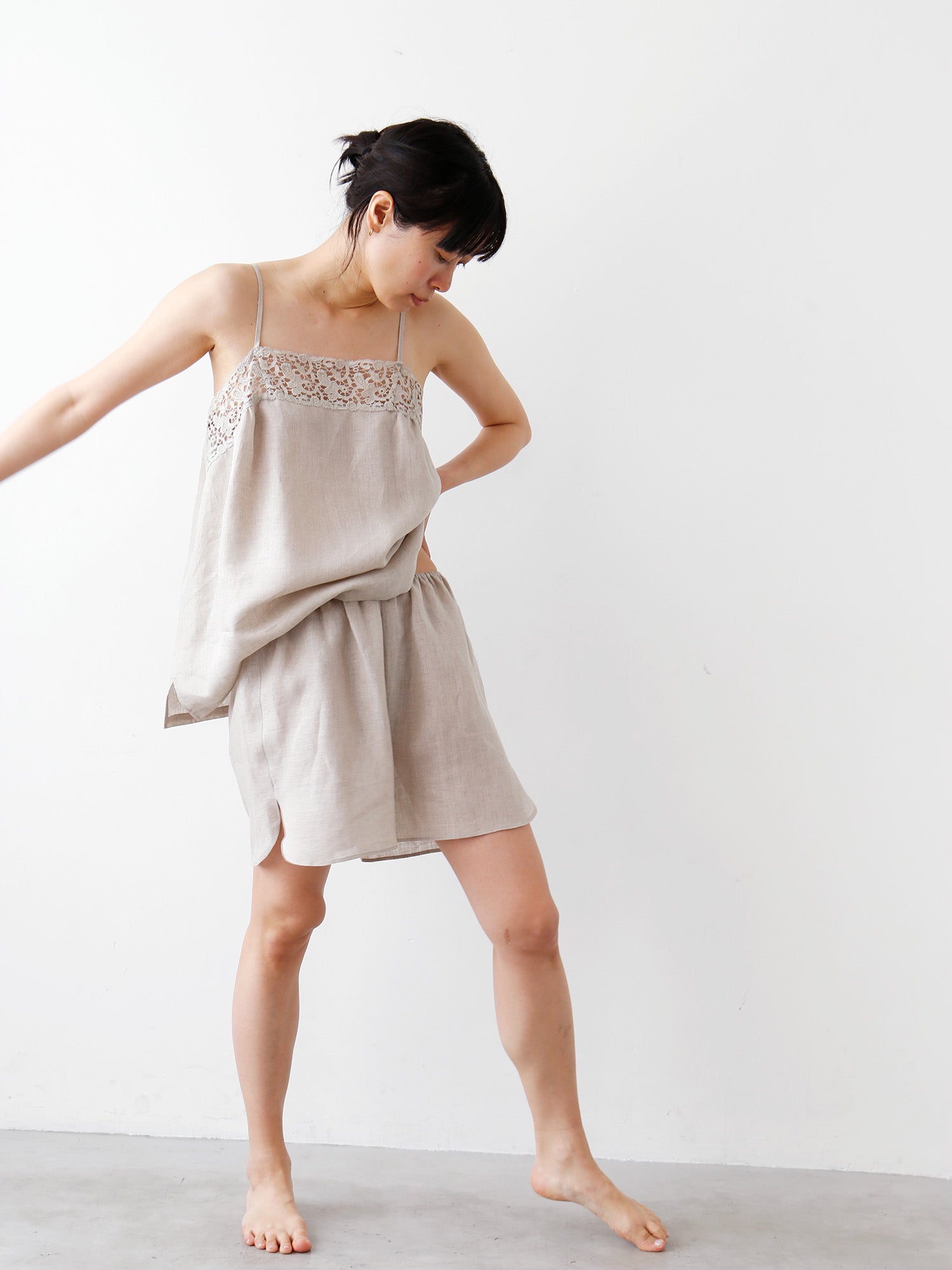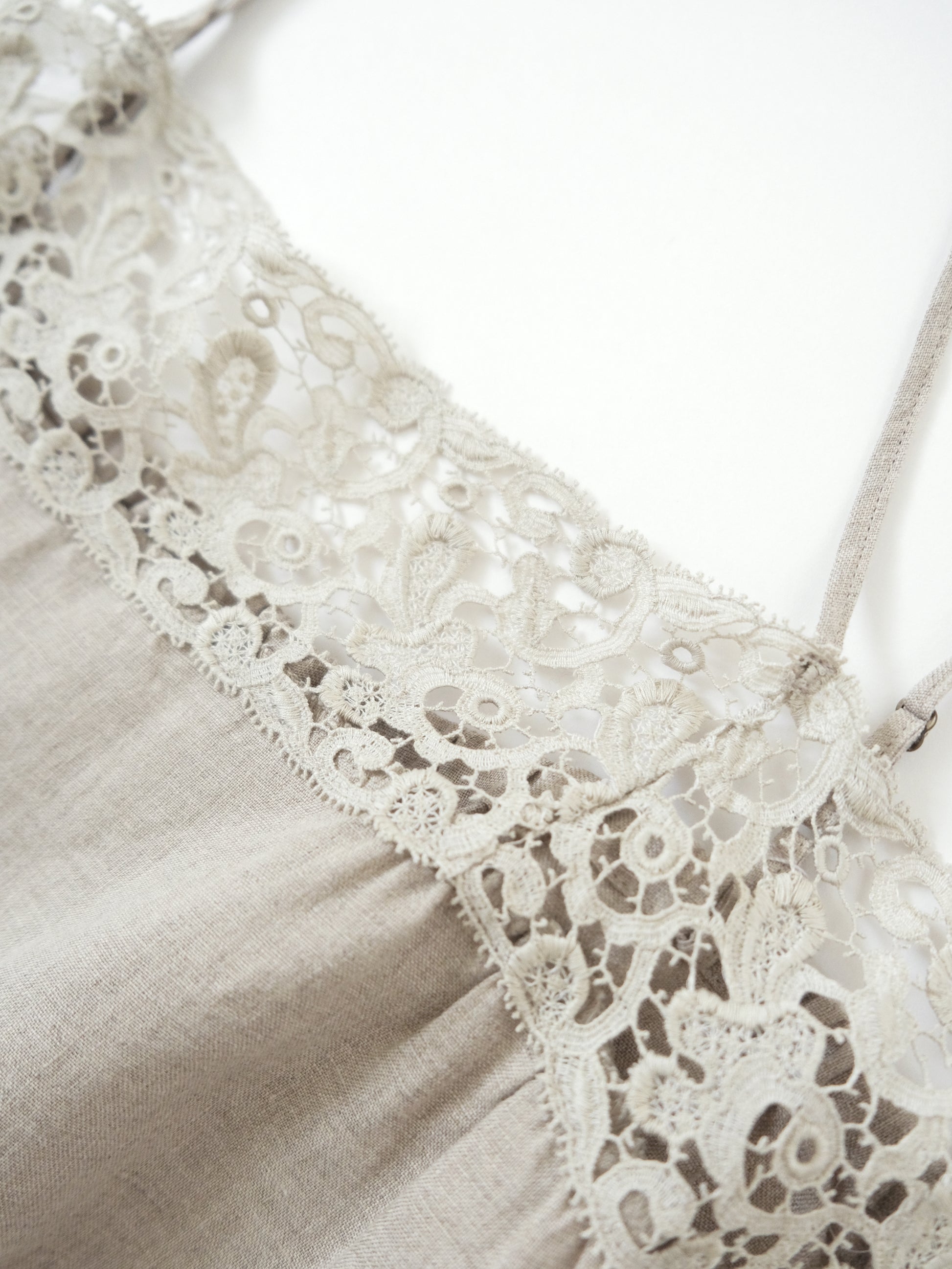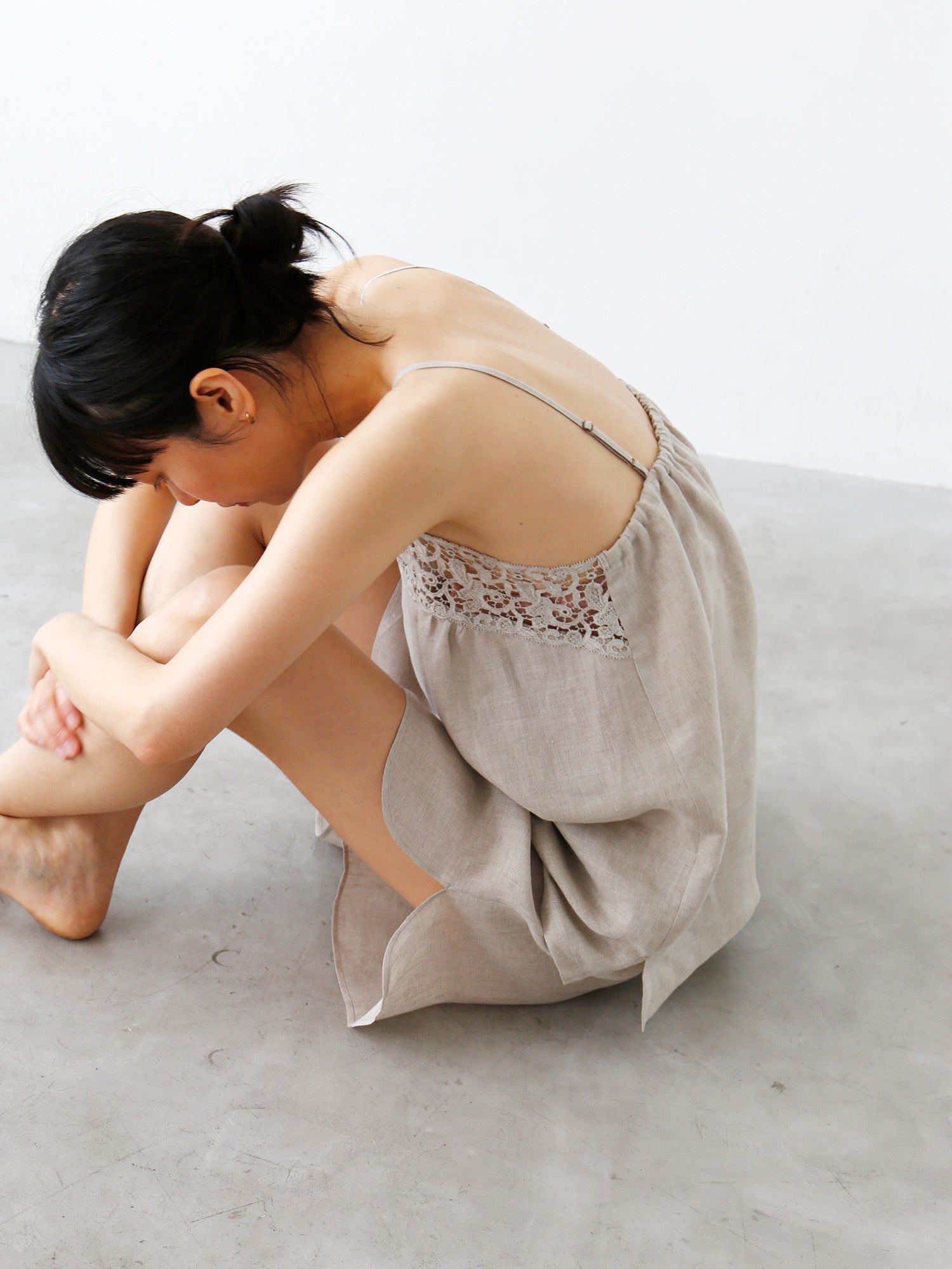 胸元にリバーレースをあしらったベルギーリネンのキャミソール。