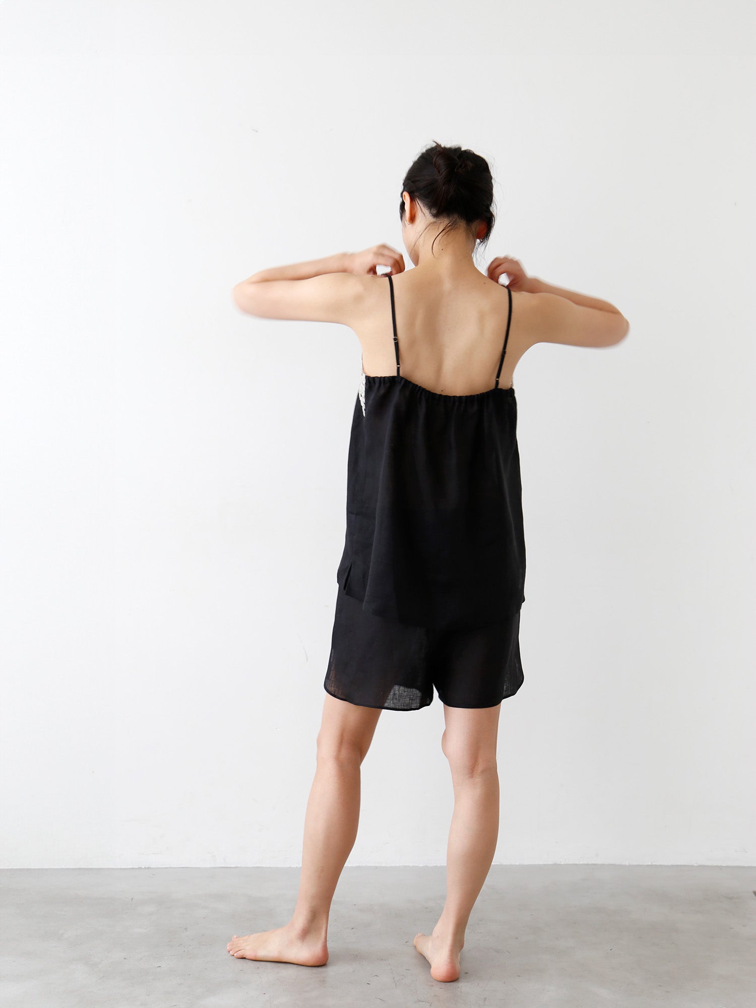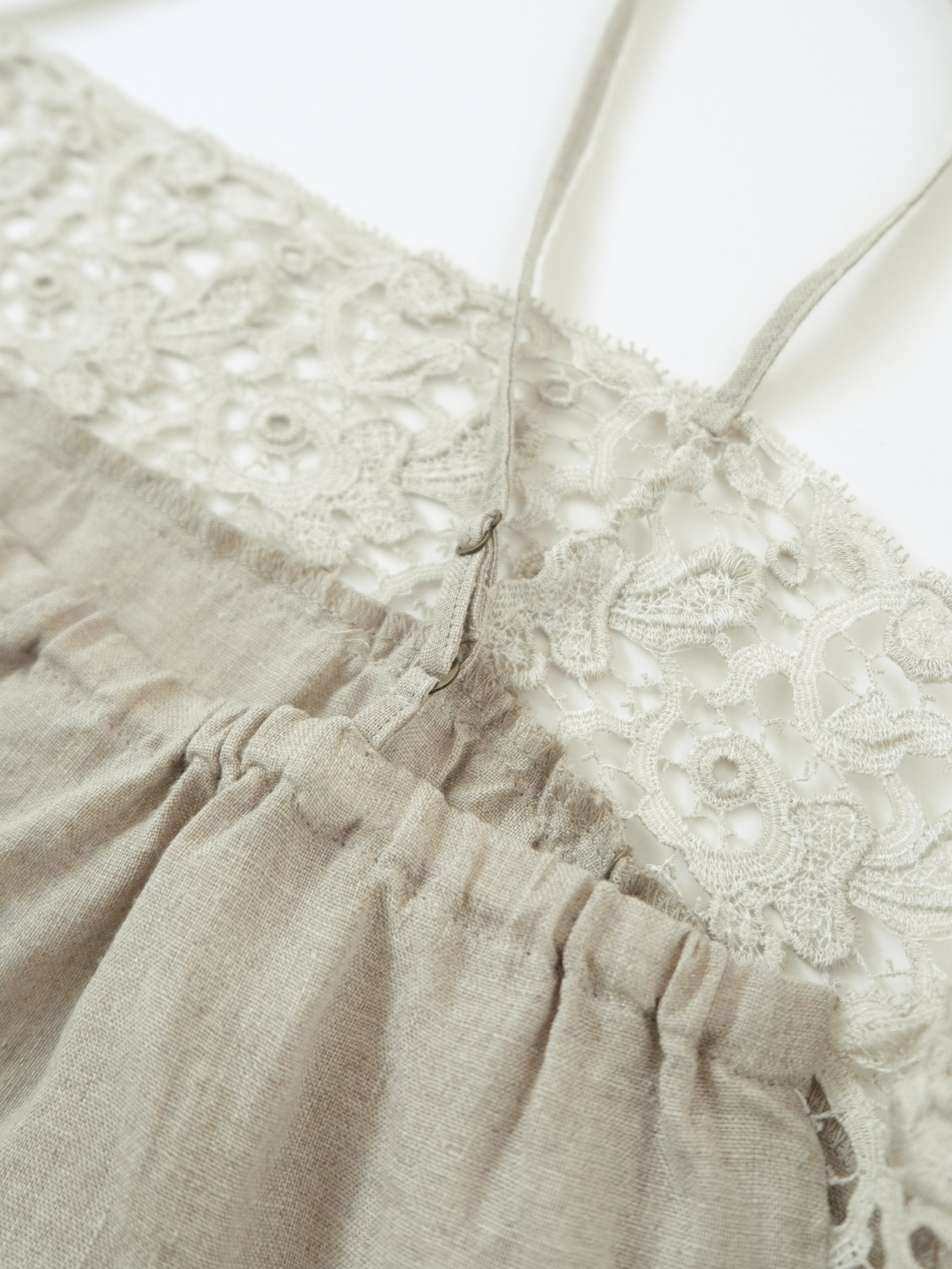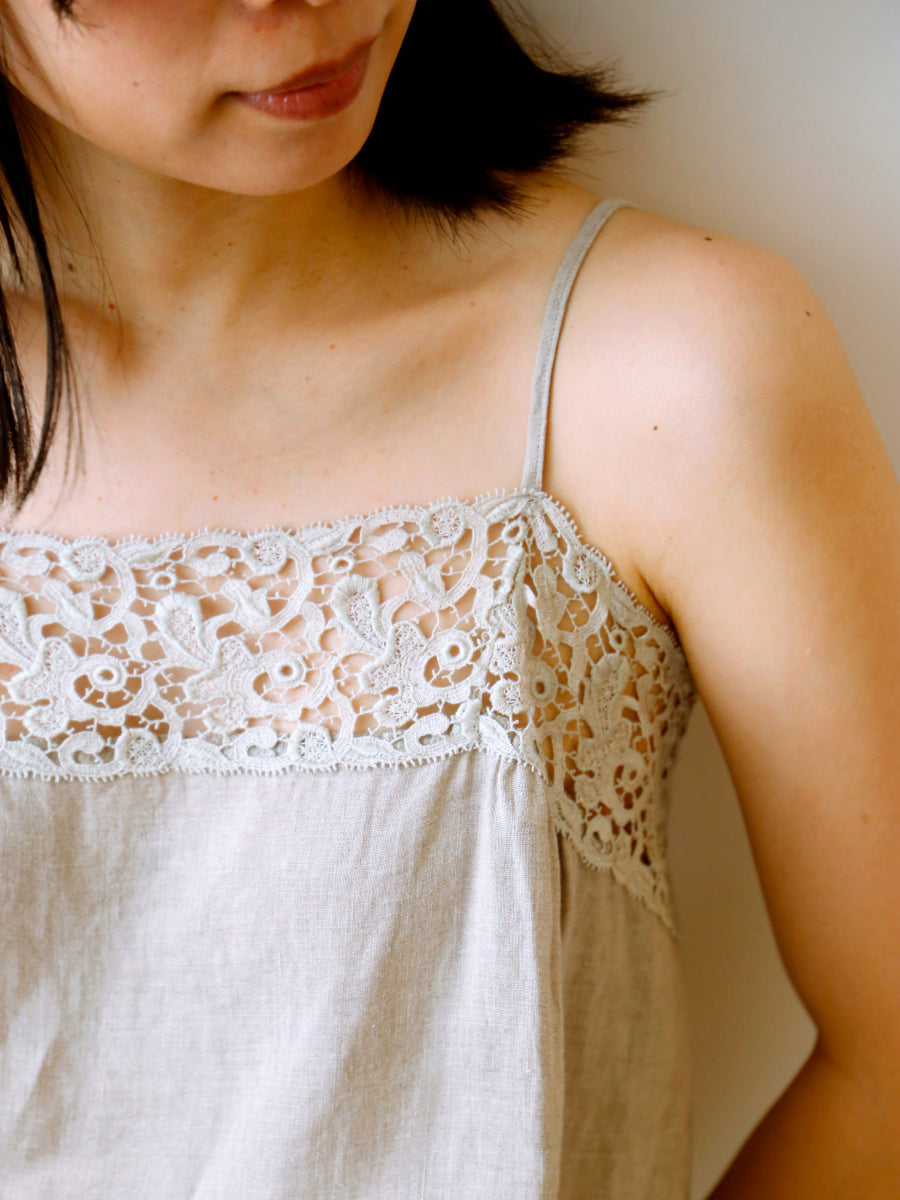 胸元にリバーレースをあしらったベルギーリネンのキャミソール。